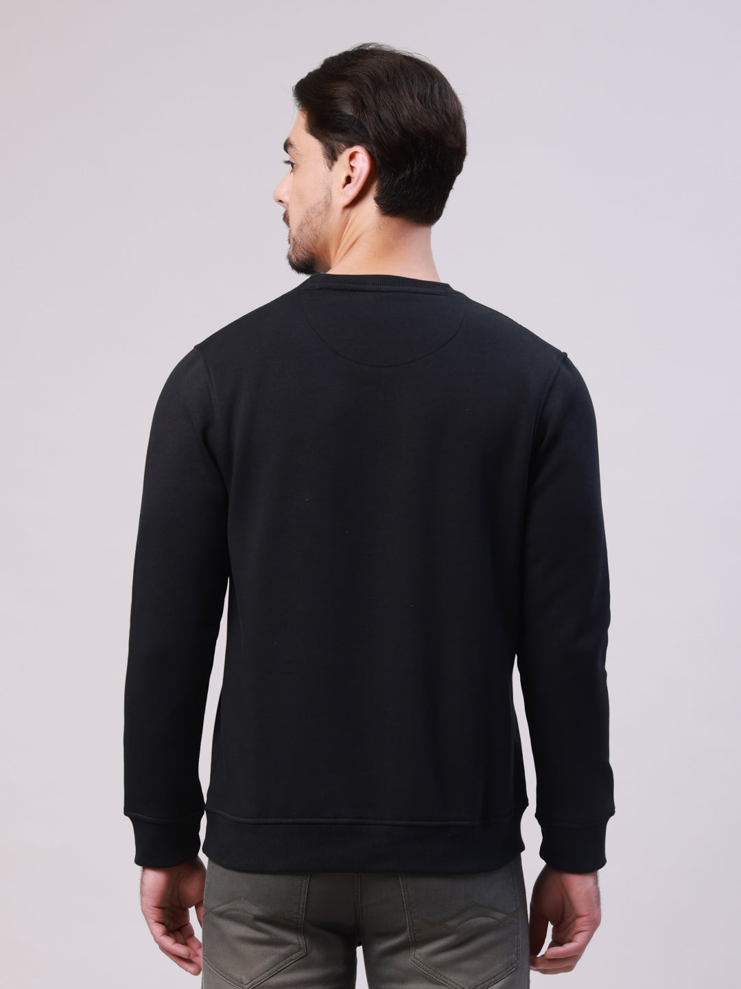 Classic Polo Men's Black Crew Neck Pull Over Solid Kangaroo Pocket Sweatshirt | CPSS - 513 B