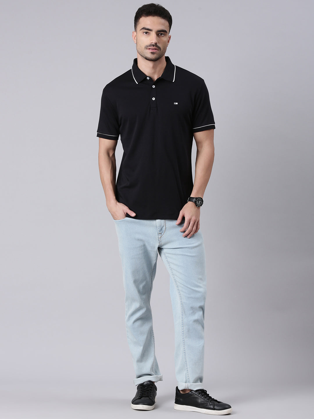 Classic Polo Men's Half Sleeve Black Polo Neck Slim Fit Solid Cotton T-Shirt | ELITE-POLO-50 A SF P