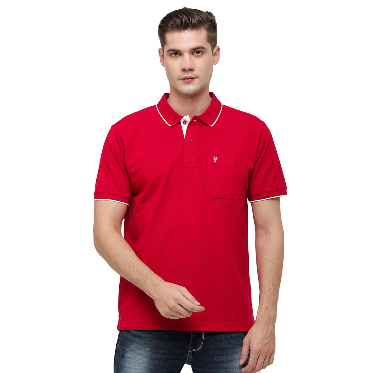 Classic Polo Men's Red Polo Neck Authentic Fit T-Shirt | 4SSN 215