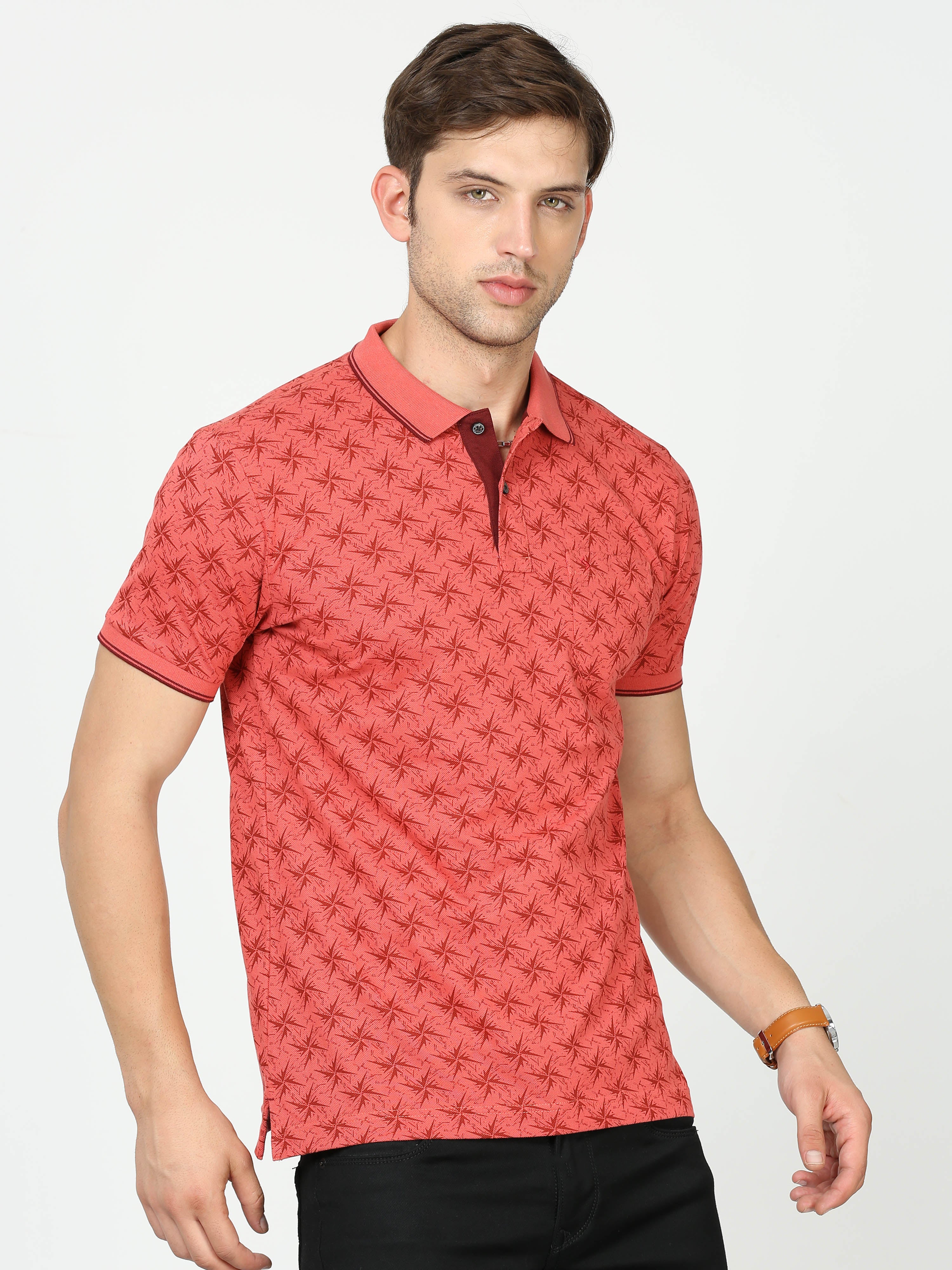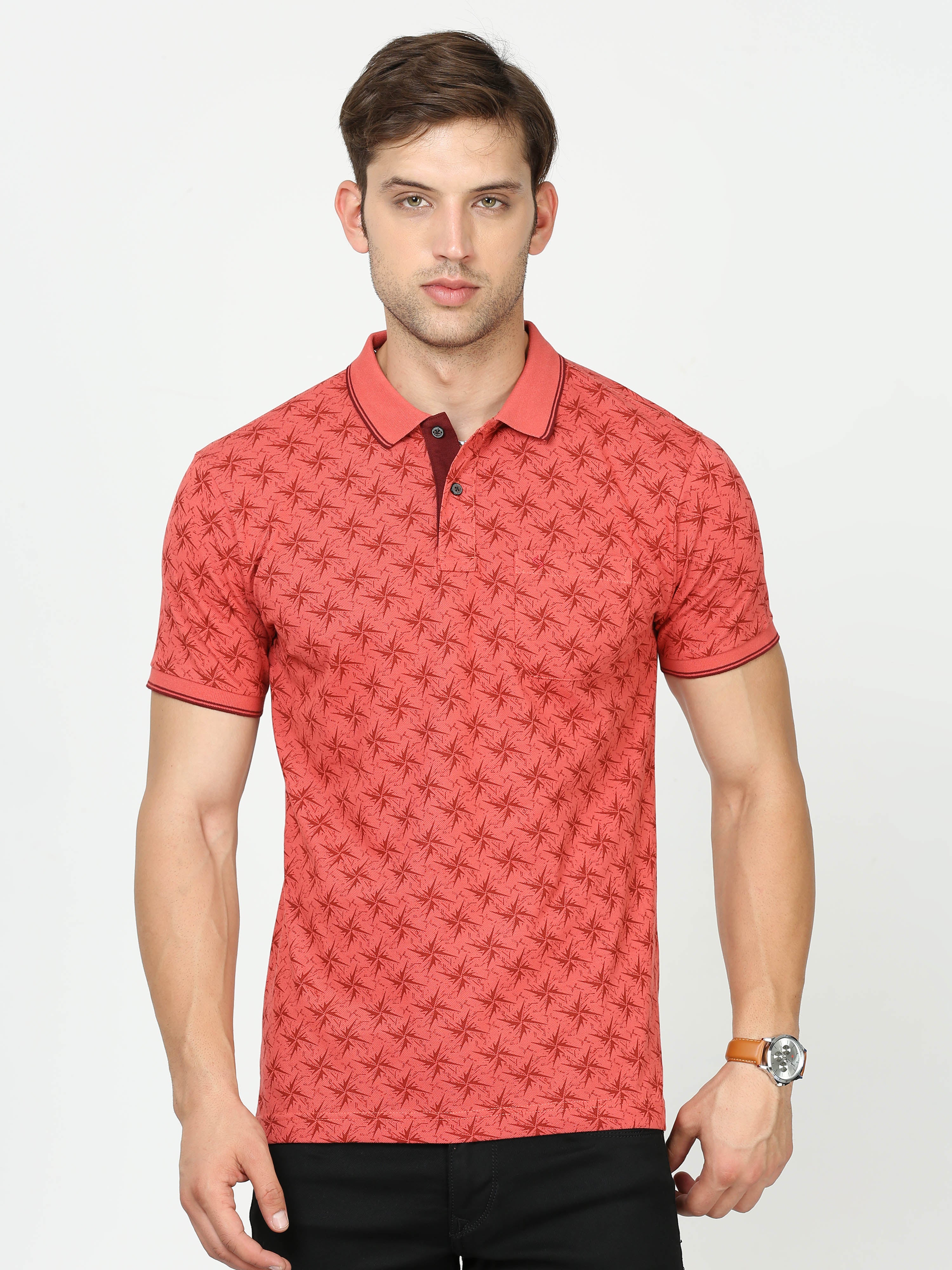 Classic Polo Mens Cotton Half Sleeves Printed Slim Fit Polo Neck Red Color T-Shirt | Beau - 215 B Sf P