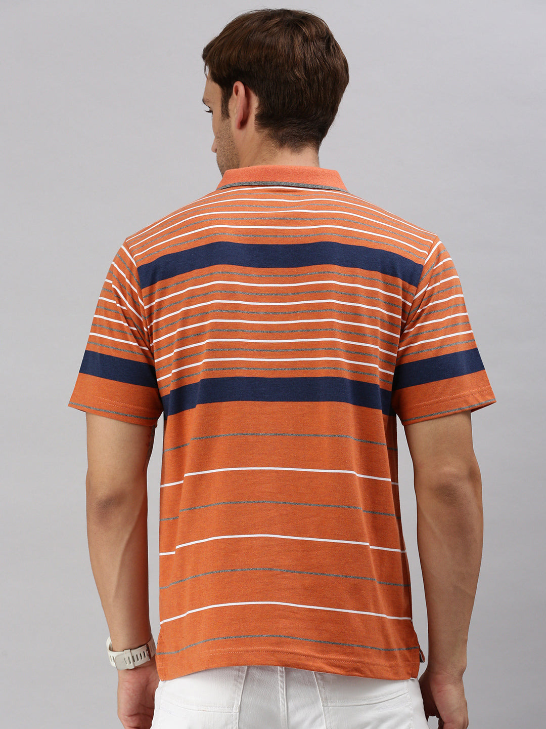 Classic Polo Men's Half Sleeve Orange Polo Neck Authentic Fit Striped T-Shirt | MEL - 258 A AF P