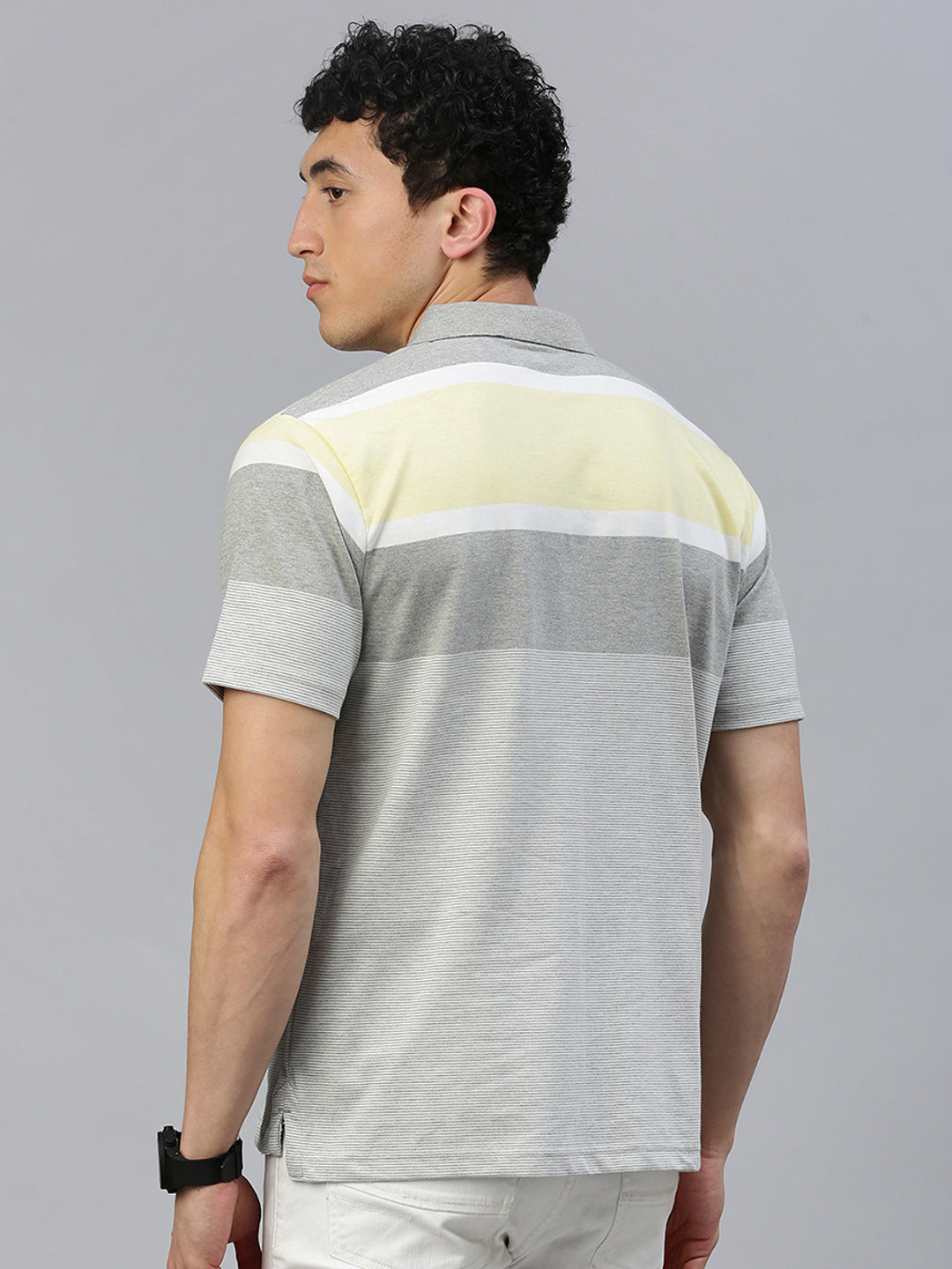 Classic Polo Men's Half Sleeve Grey/White Polo Neck Authentic Fit Striped T-Shirt||MEL - 262 A AF P