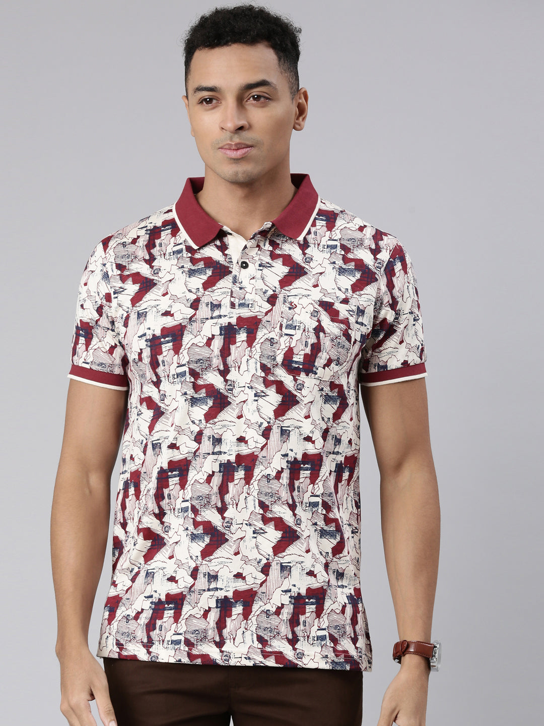 SALEClassic Polo Men's Half Sleeve Rust Polo Neck Slim Fit Printed T-Shirt | FP - 02 A SF P