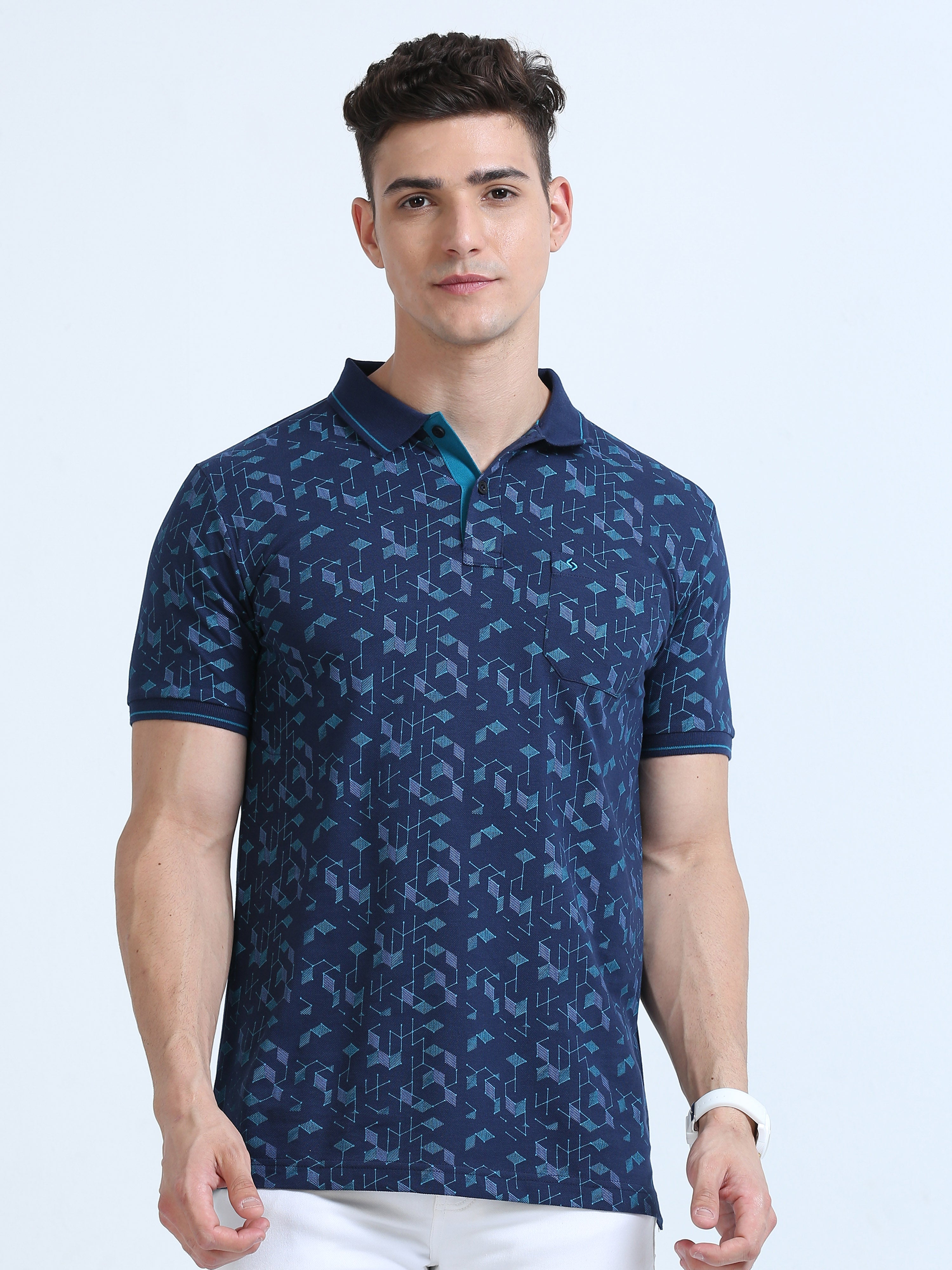 Classic Polo Men's Polo Neck Cotton Slim Fit Printed T-Shirt | BELLO-258 A SF P