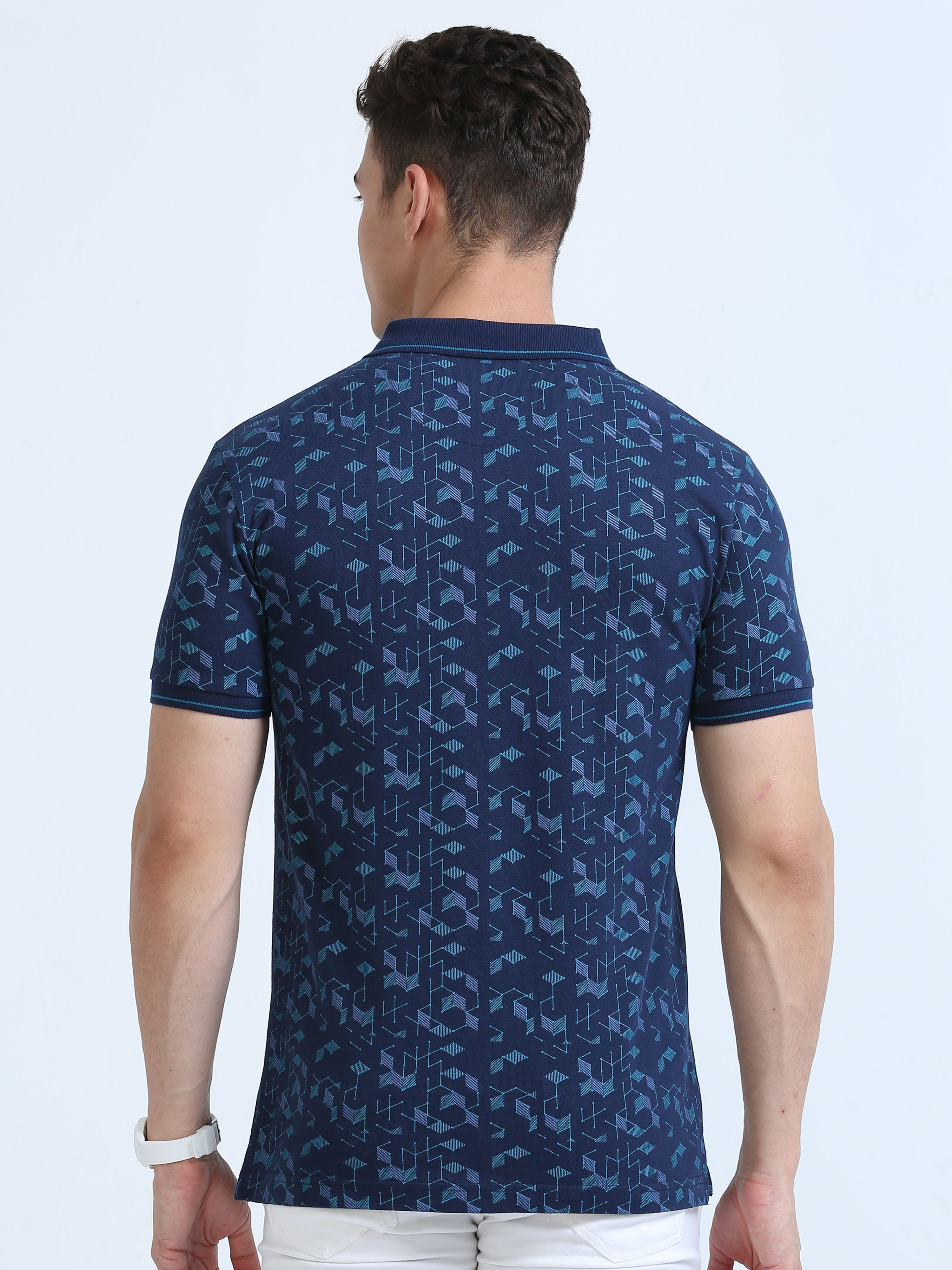 Classic Polo Men's Polo Neck Cotton Navy Blue Slim Fit Printed T-Shirt | BEAU-242 A SF P