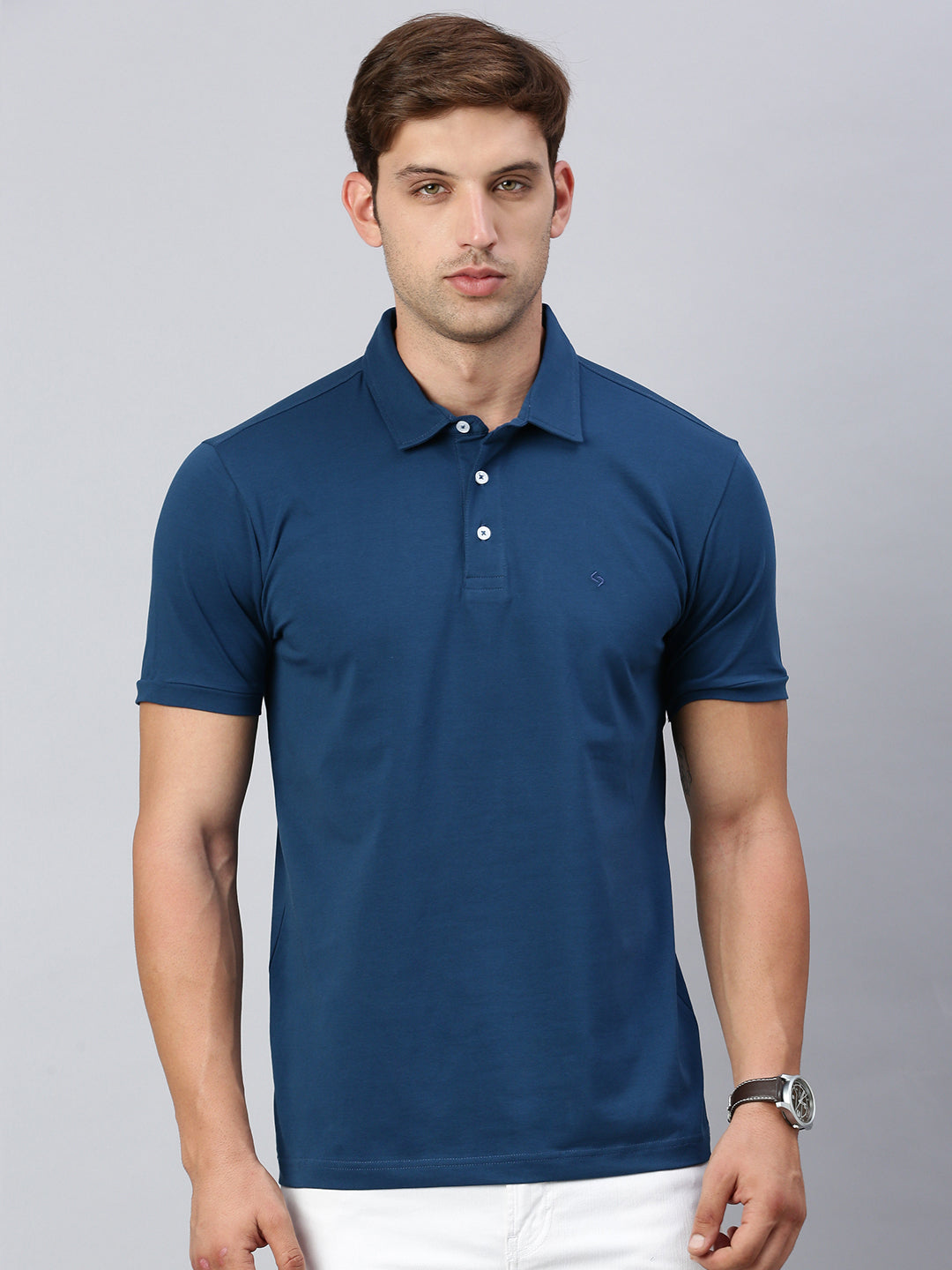 SALEClassic Polo Men's Half Sleeve Blue Polo Neck Slim Fit Solid T-Shirt | PRM - 795 A SF P