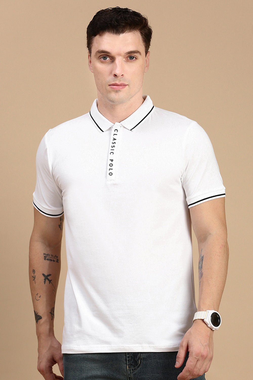 SALEClassic Polo Men's Half Sleeve White Polo Neck Slim Fit Solid T-Shirt | ELITE-POLO-18 A SF P