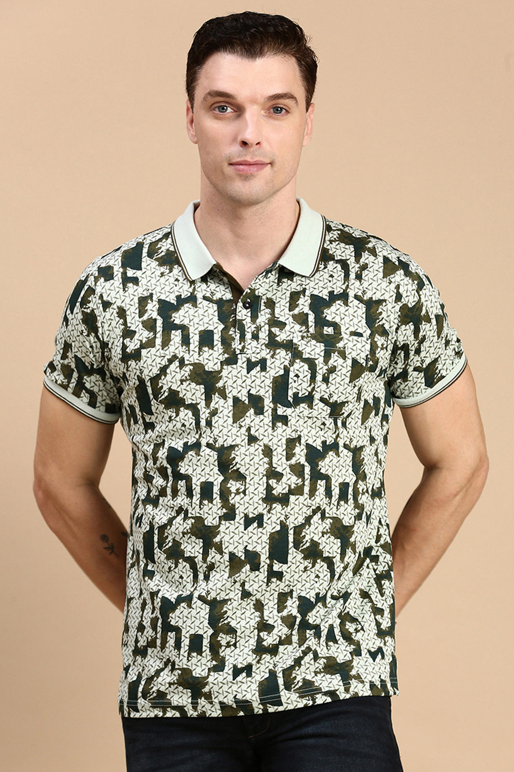SALEClassic Polo Men's Half Sleeve Green Polo Neck Slim Fit Printed T-Shirt | VIVID POLO - 33 A SF P