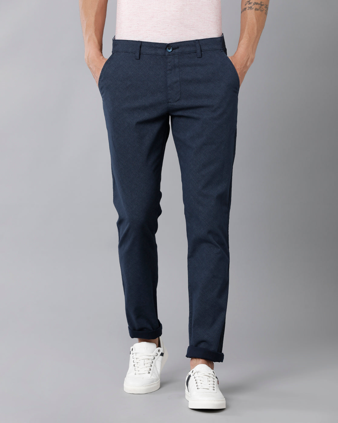 Classic Polo Men's Navy Blue Cotton Lycra Moderate Fit Trousers | TRS-CHINO-NVY MF LY
