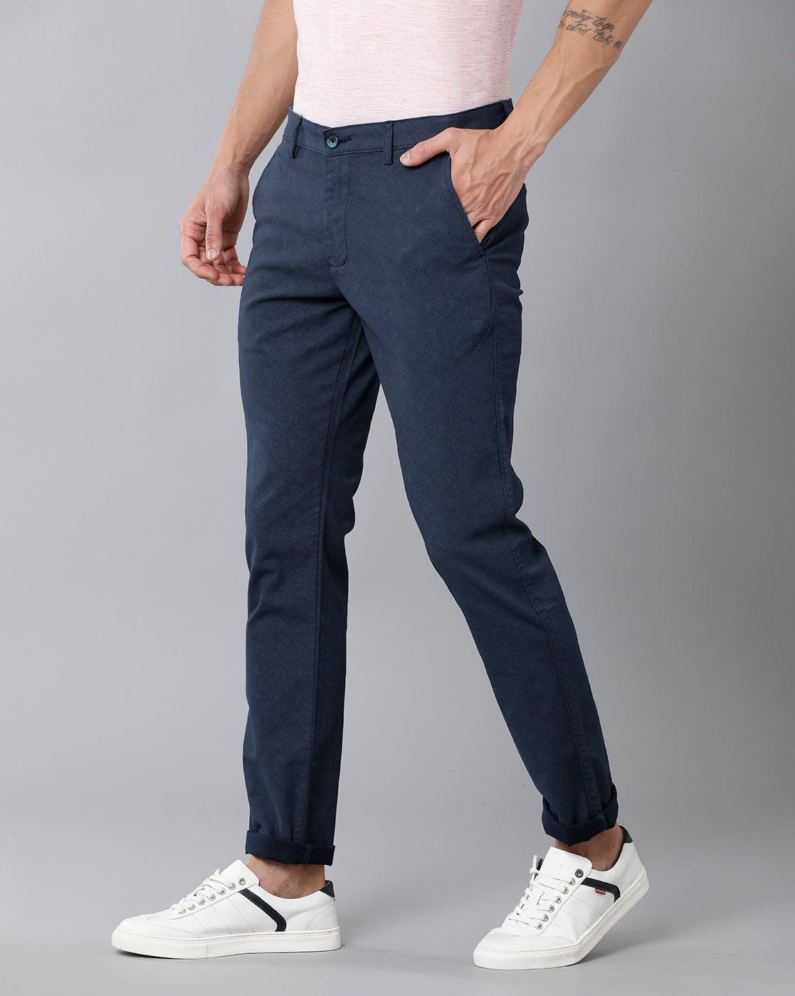 Classic Polo Men's Navy Blue Cotton Lycra Moderate Fit Trousers | TRS-MELLOW-NVY MF LY