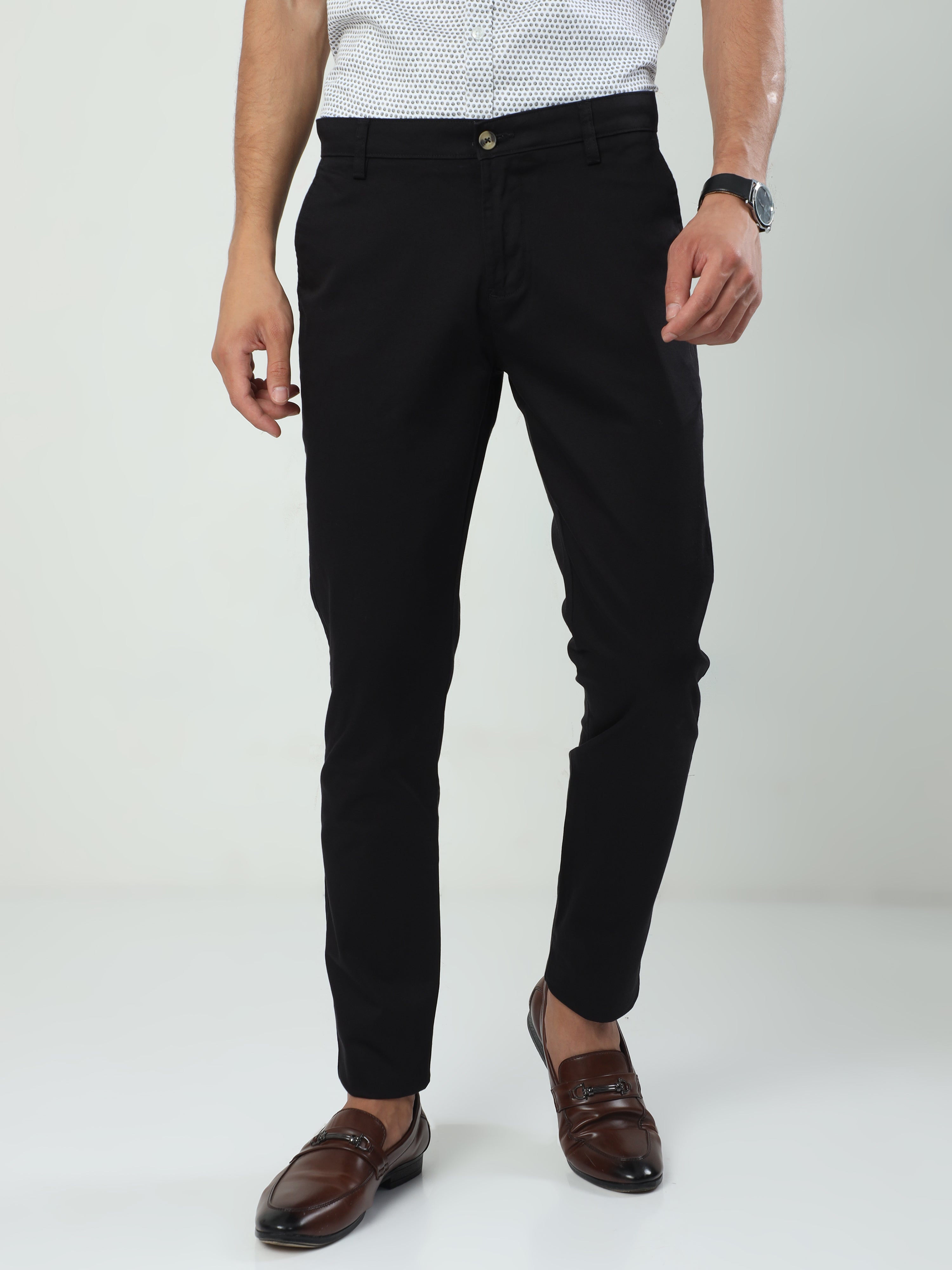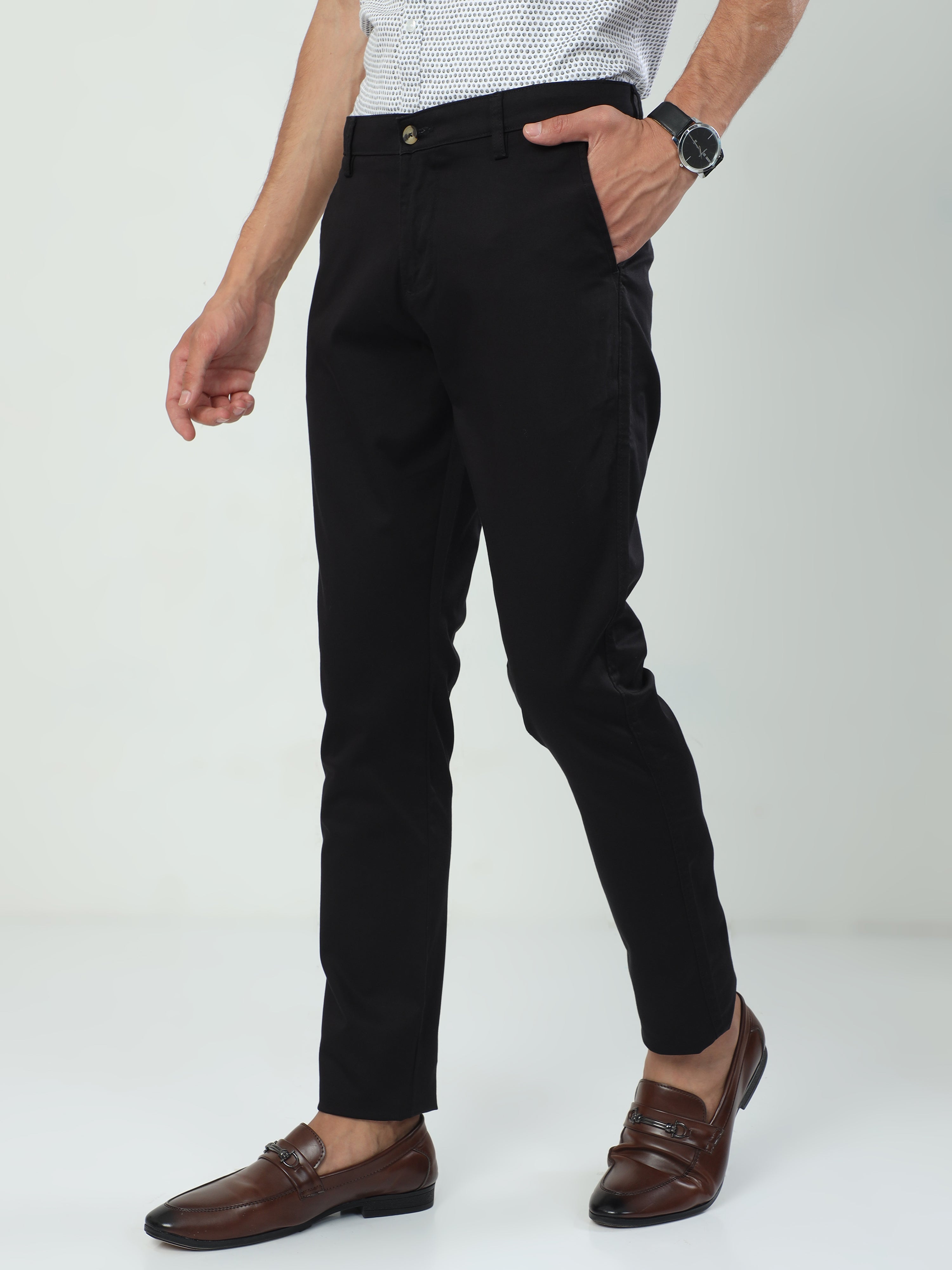 Classic Polo Men's Black Cotton Lycra Moderate Fit Trousers | TRS-CHINO-BLK MF LY