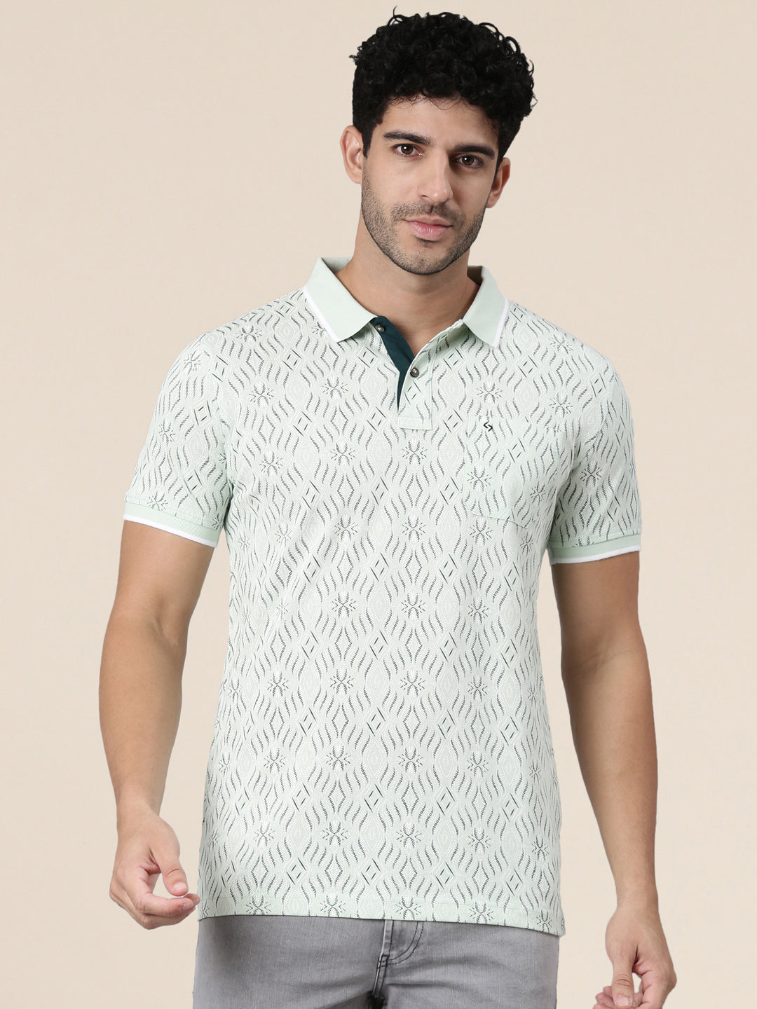 Classic Polo Men's Half Sleeve Light Green Polo Neck Slim Fit All-Over Print Cotton T-Shirt | BEAU - 307 B SF P