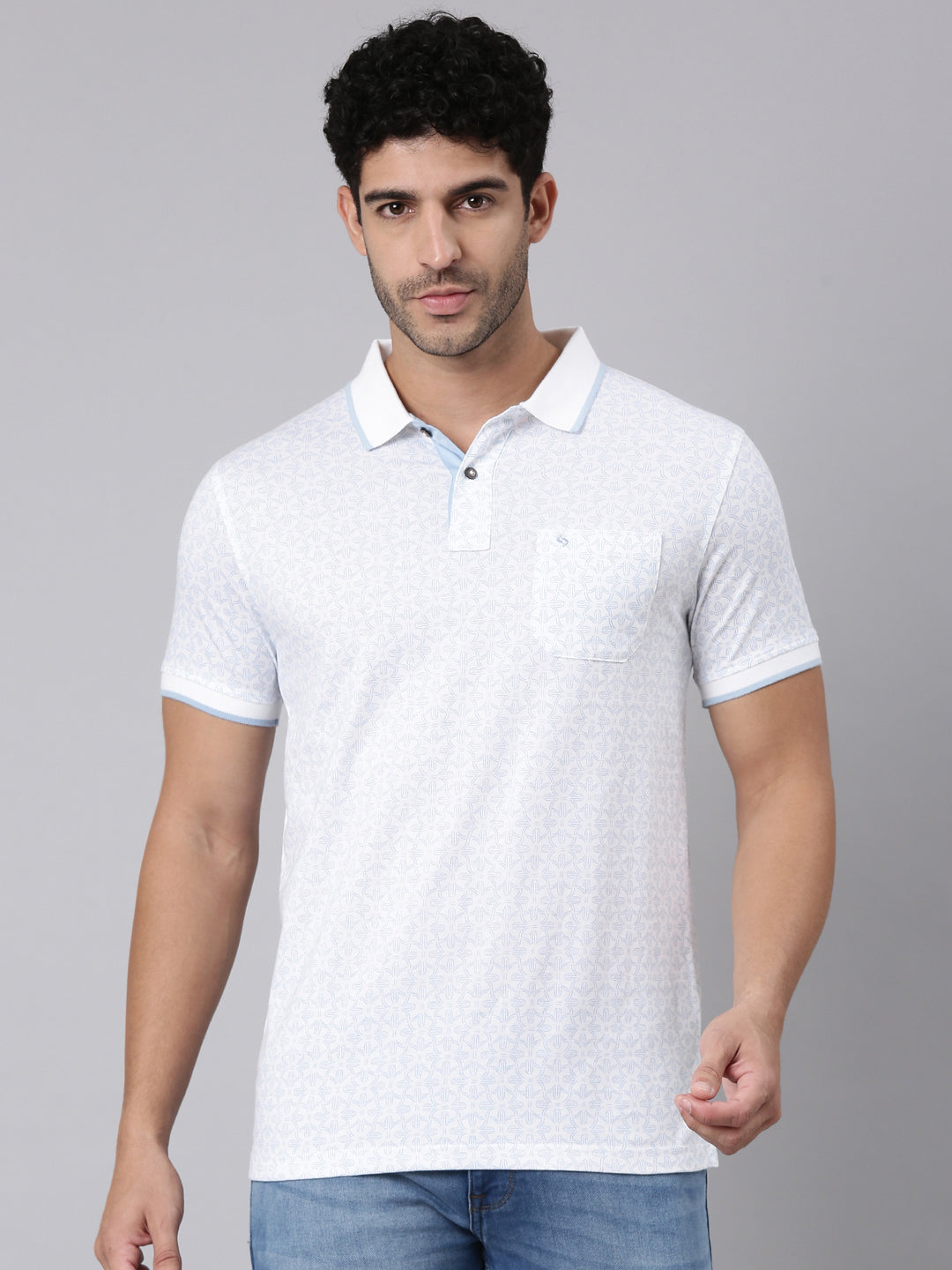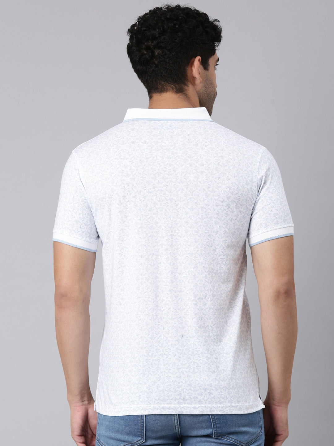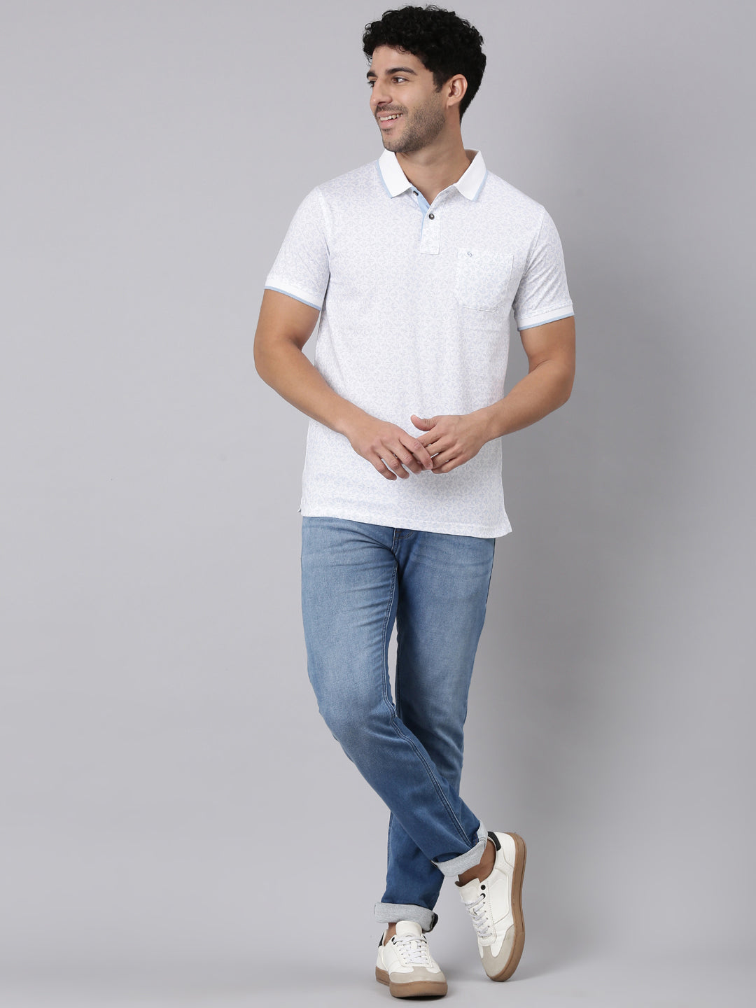 Classic Polo Men's Half Sleeve White Polo Neck Slim Fit All-Over Print Cotton T-Shirt | BELLO - 393 A SF P