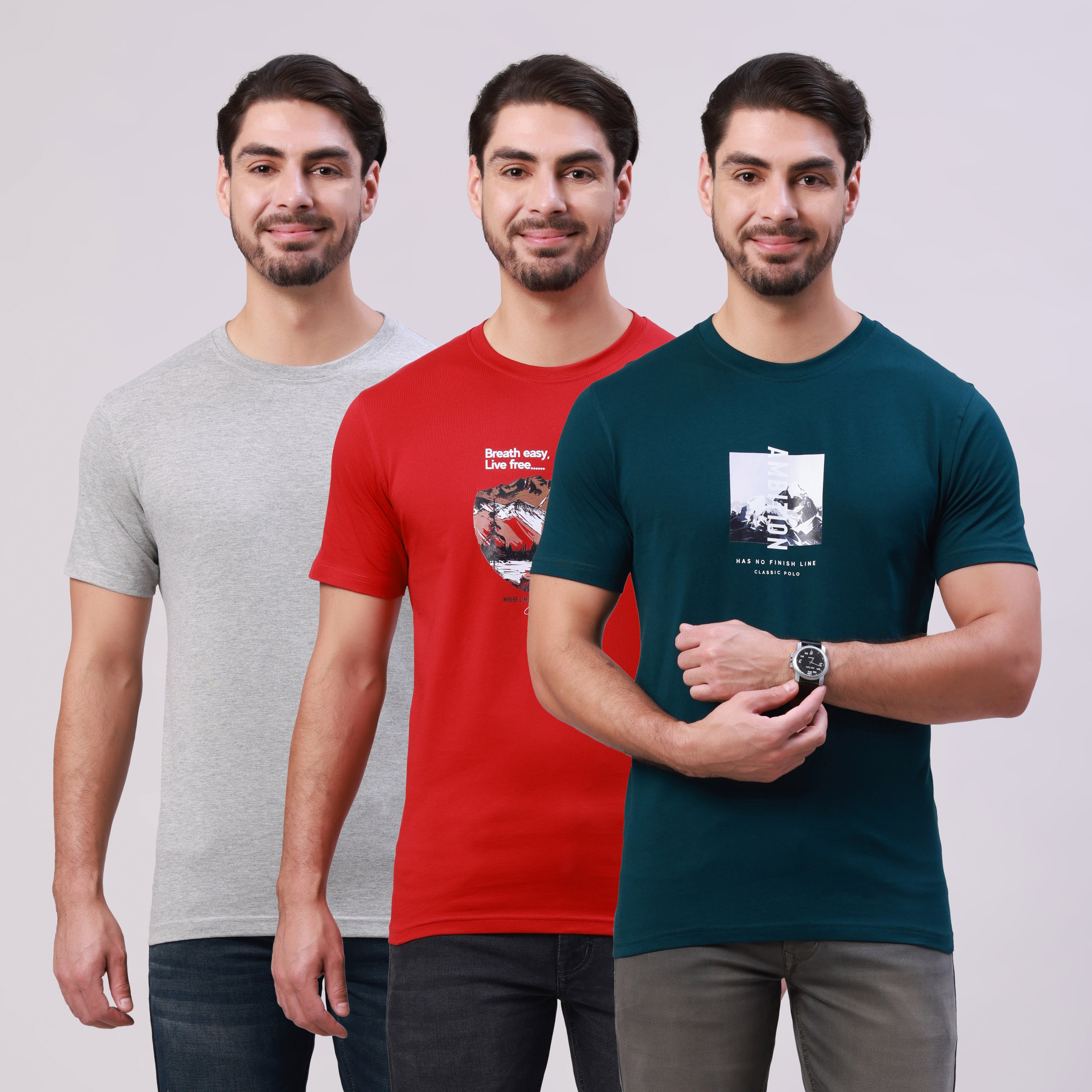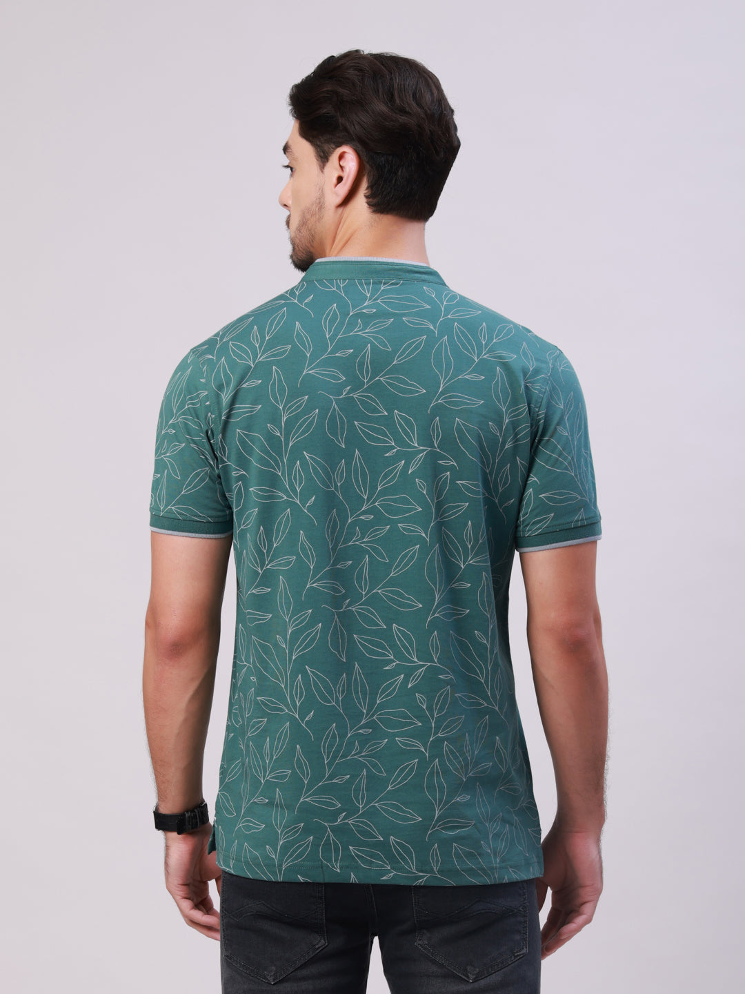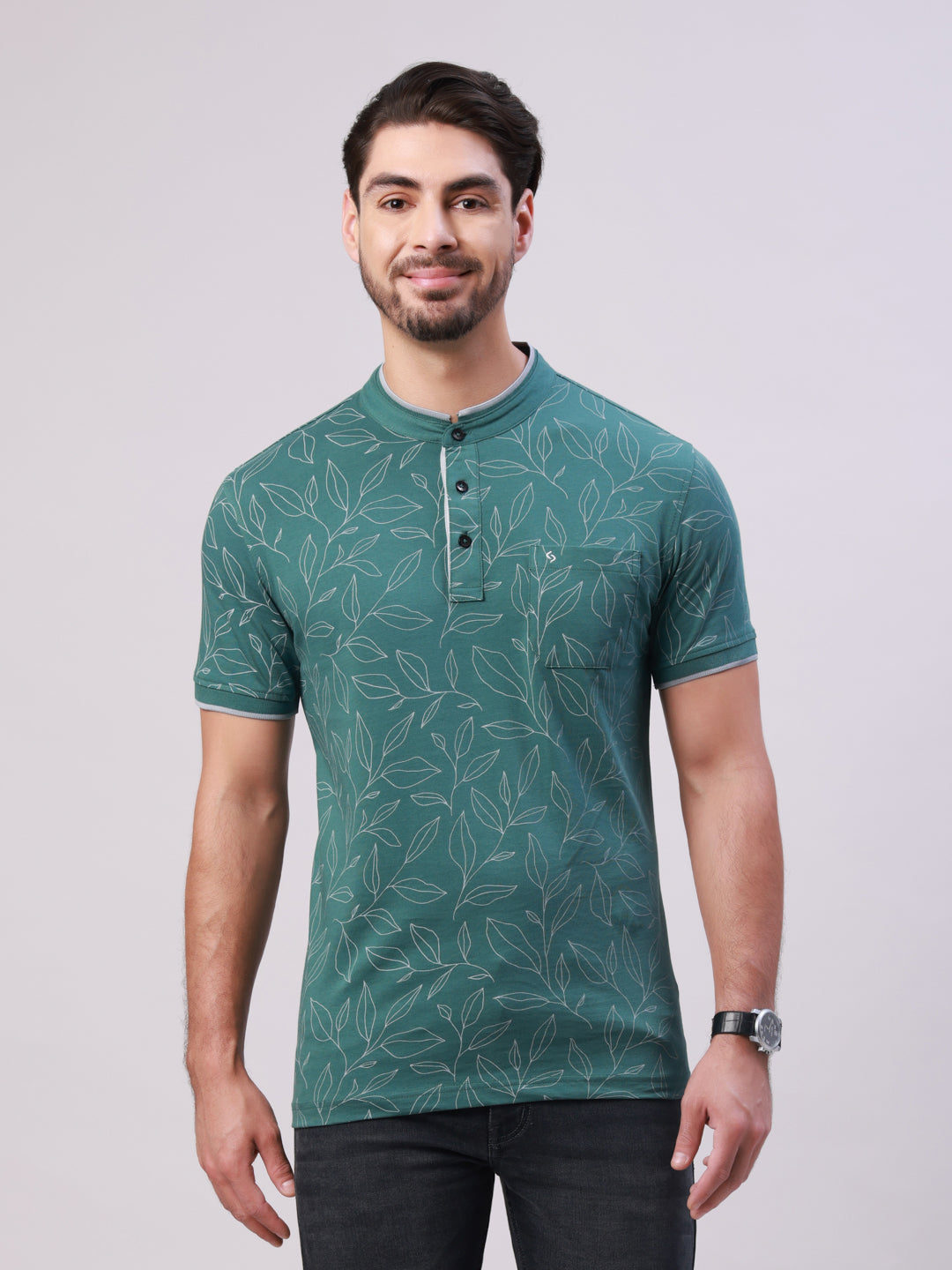 Classic Polo Men's Full Sleeve Burgundy Polo Neck Slim Fit Printed Cotton T-Shirt | VERNO - 369 B SF P
