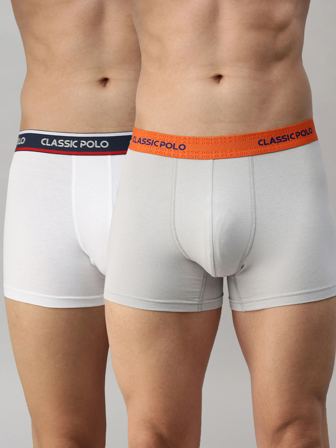 Classic Polo Men's Modal Solid Trunks | Glance - White & Grey (Pack of 2)