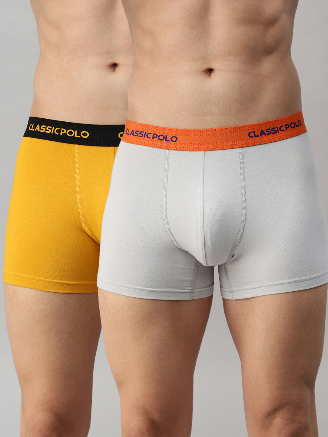 Classic Polo Men's Modal Solid Trunks | Glance - Yellow & Grey (Pack of 2)