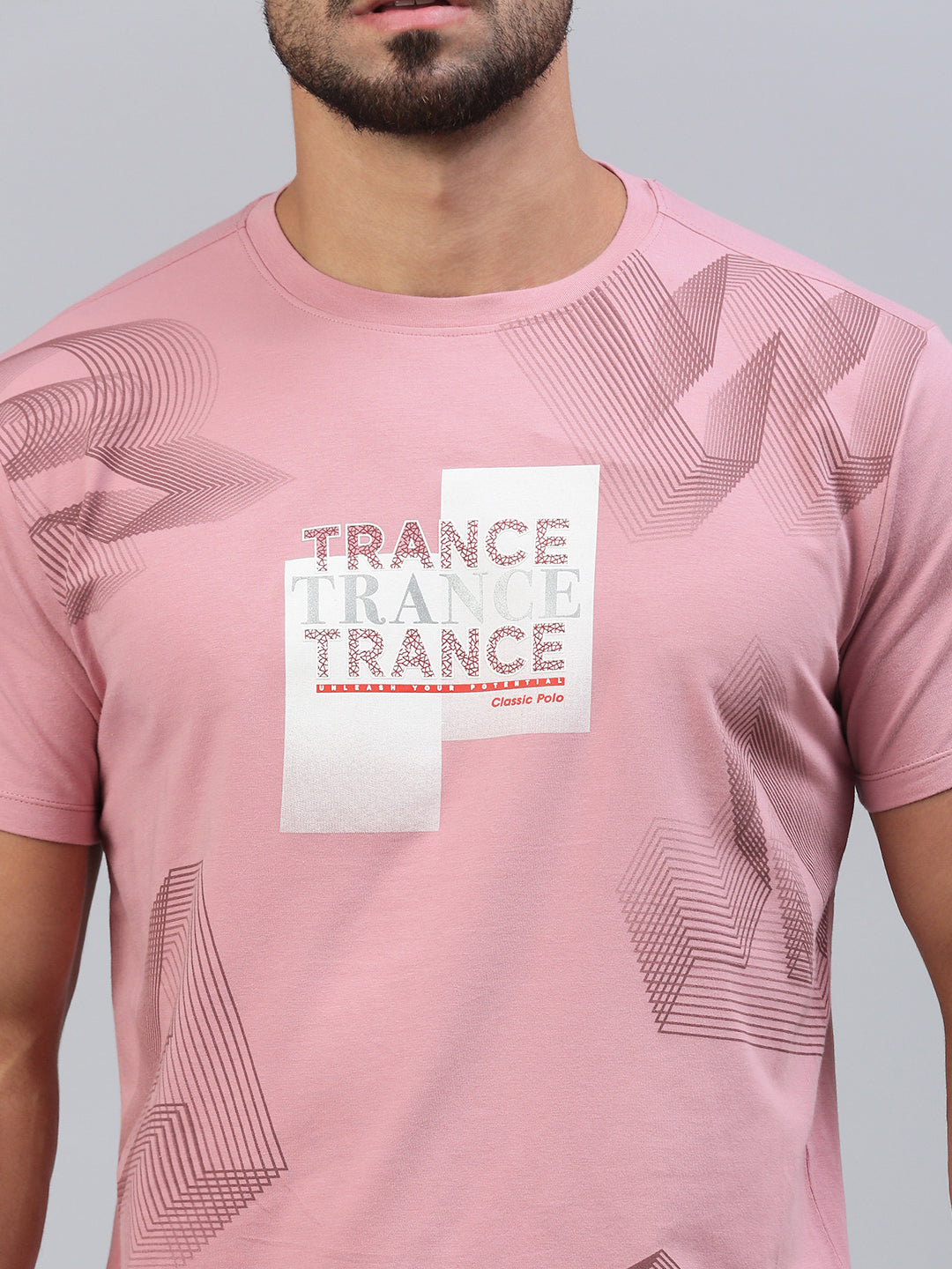 Classic Polo Men's Half Sleeve Dark Pink Crew Neck Slim Fit Printed T-Shirt||BALENO - 623 A SF C