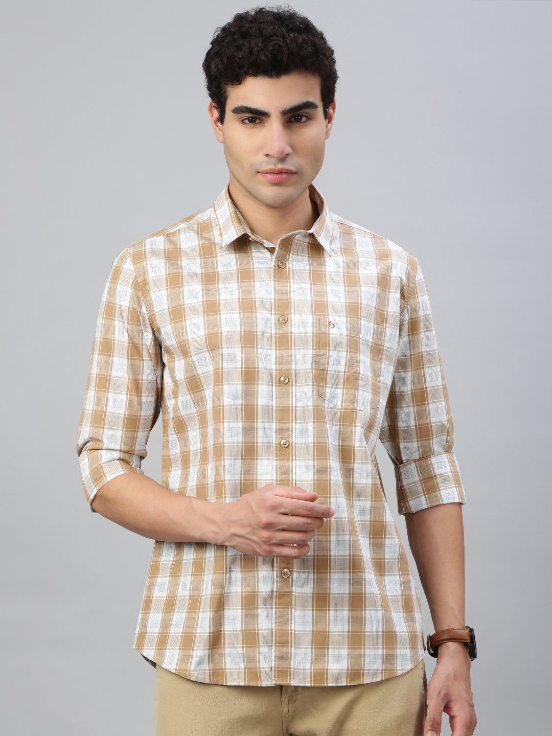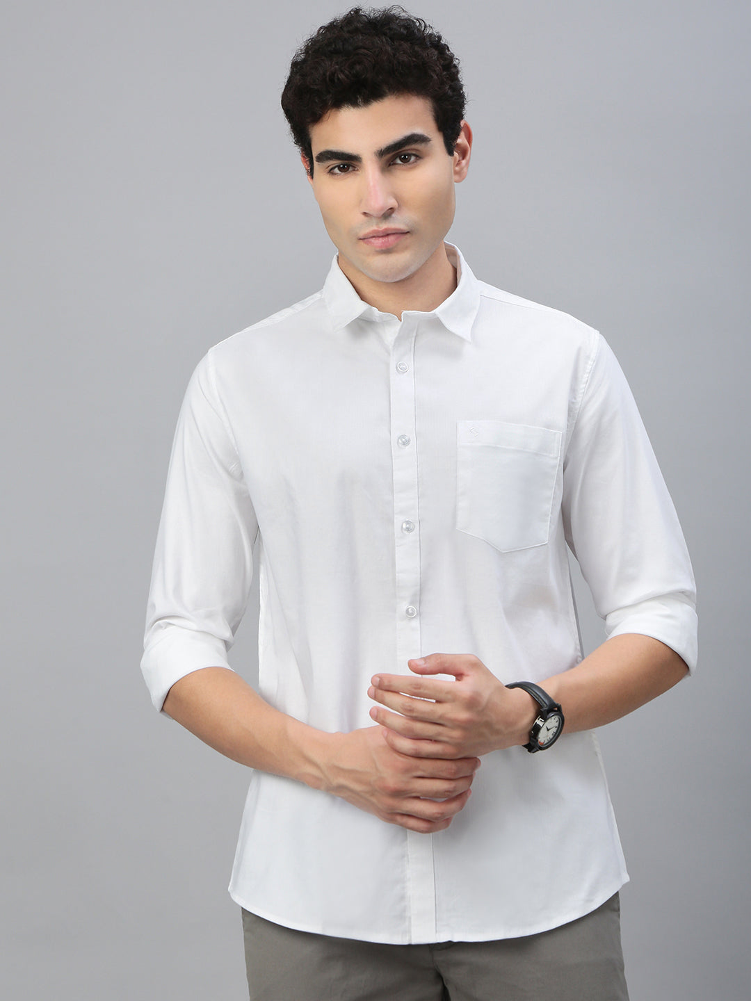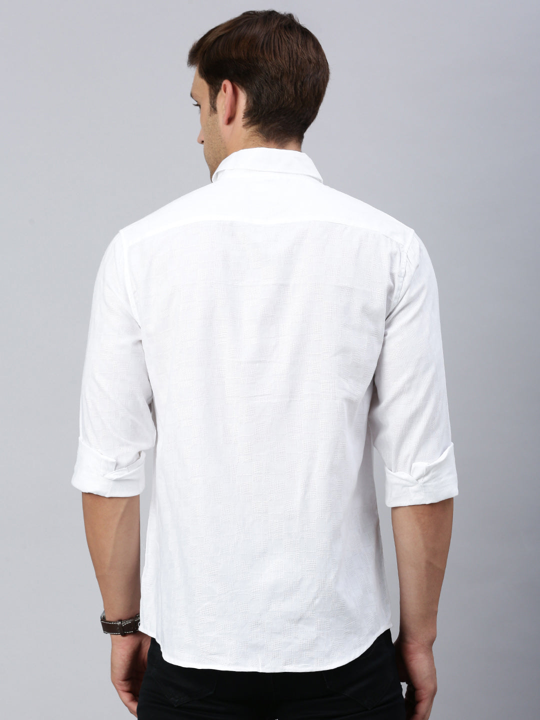 Classic Polo Men's Full Sleeve White Polo Neck Slim Fit Checked Shirt | SP2-CL-35 A-FS-CHK-SF