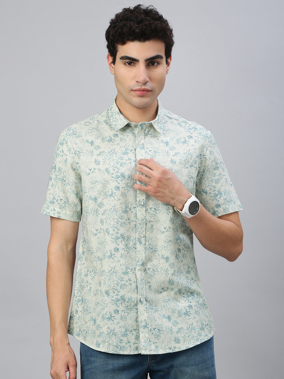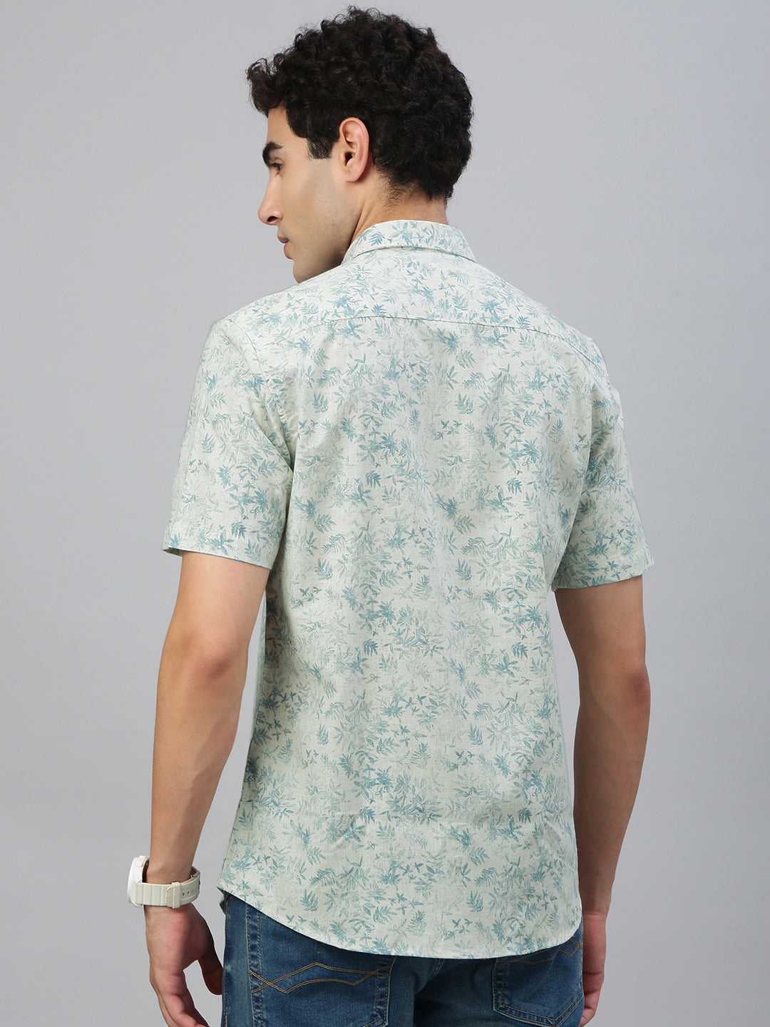 Classic Polo Men's Half Sleeve White/Grey Polo Neck Slim Fit All-Over Print Shirt