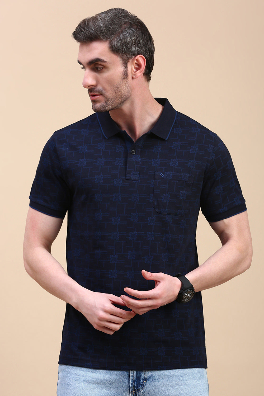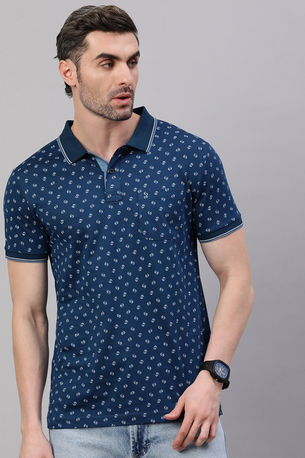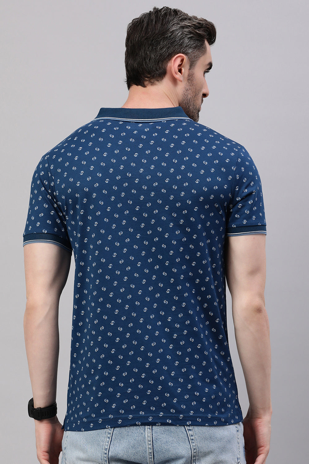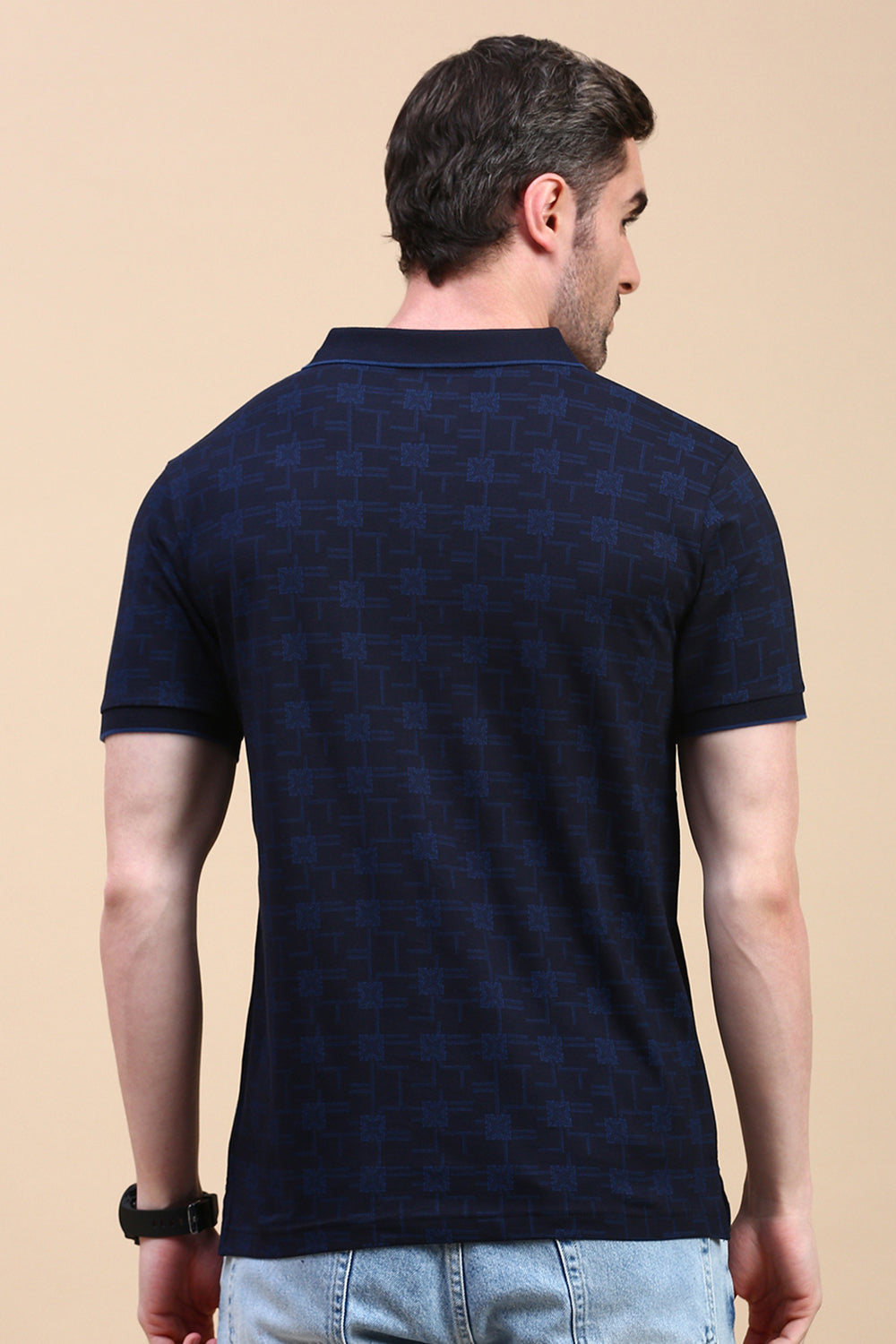 Classic Polo Men's Half Sleeve Navy Blue Polo Neck Slim Fit All-Over Print T-Shirt