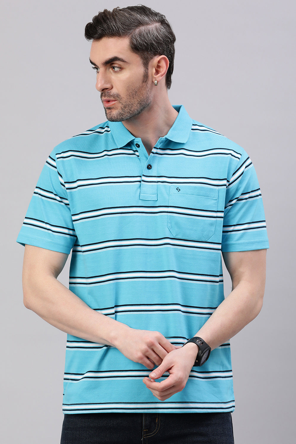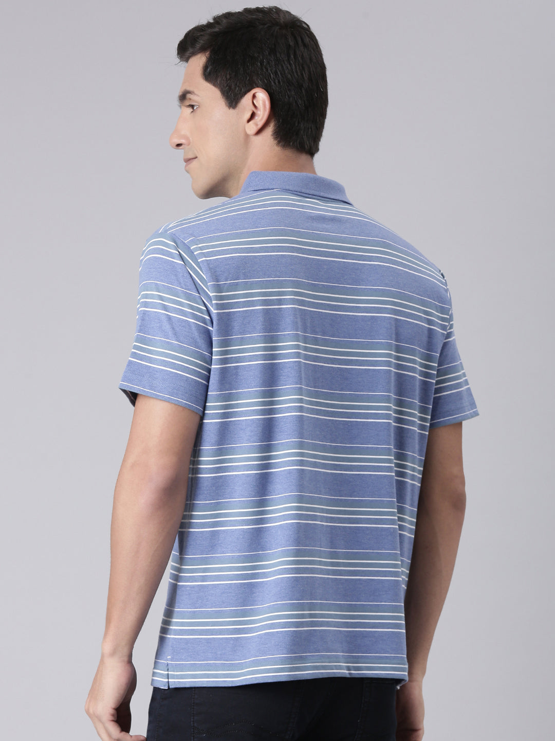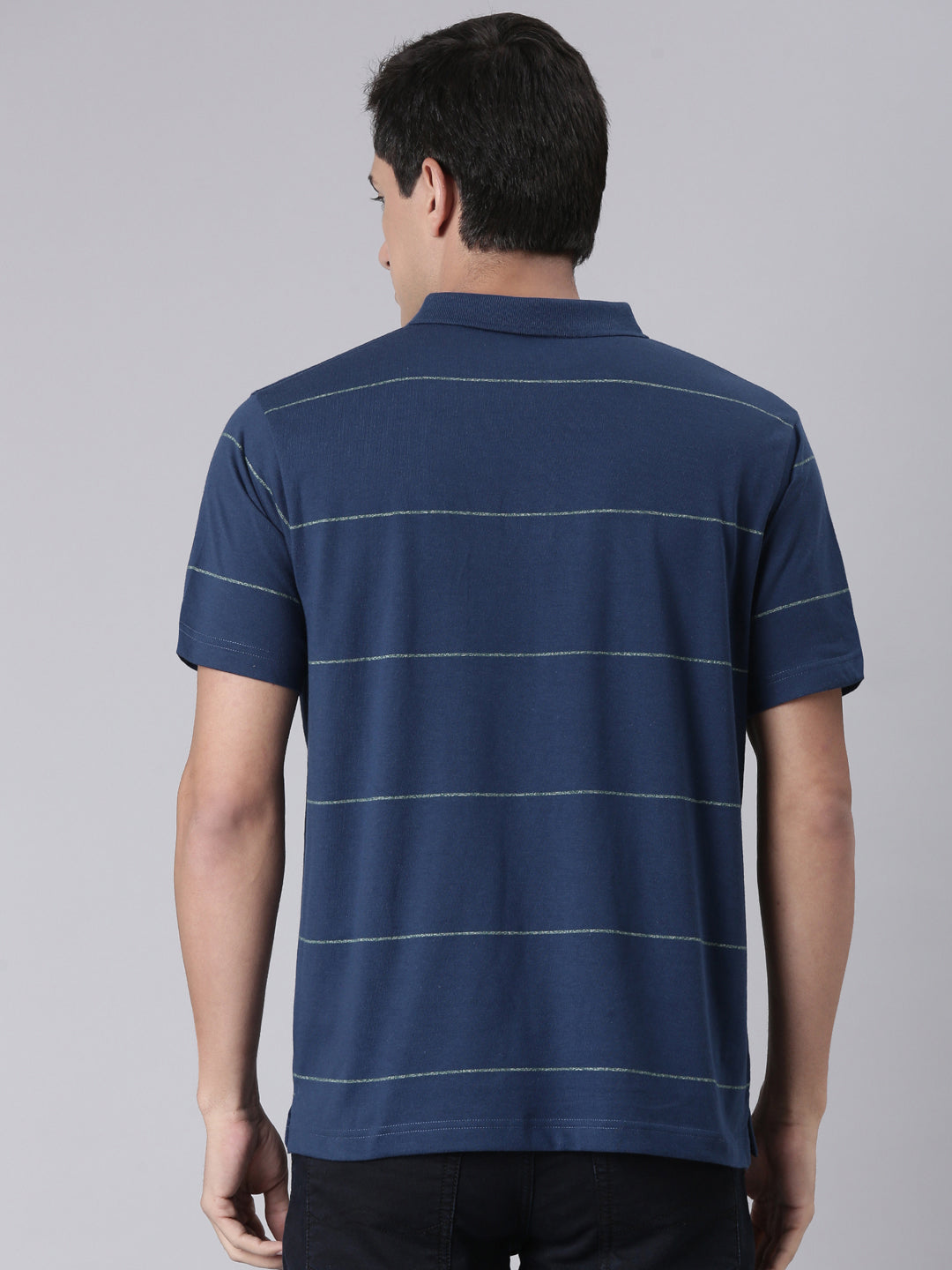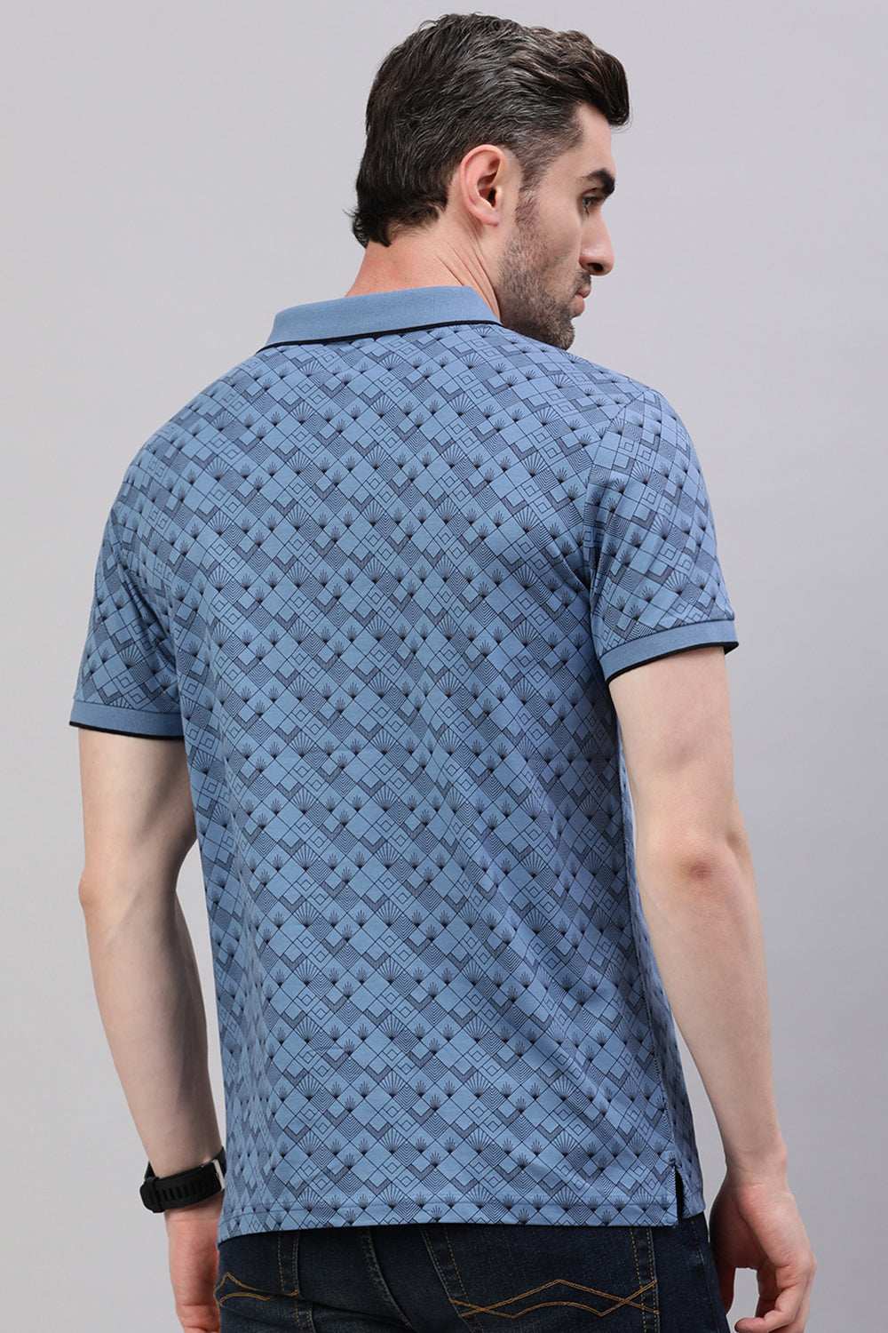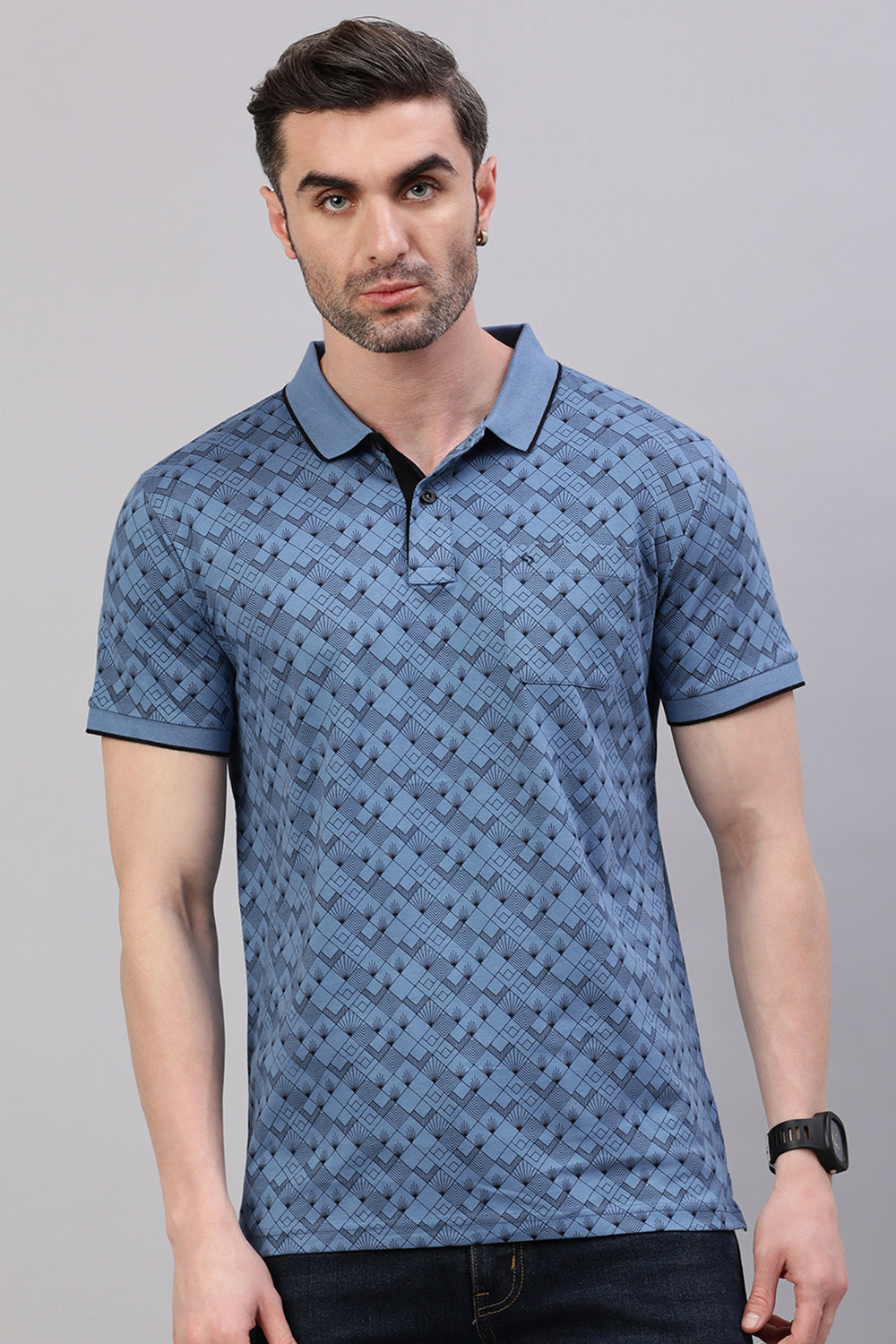 Classic Polo Men's Half Sleeve Navy Blue Polo Neck Slim Fit All-Over Print T-Shirt
