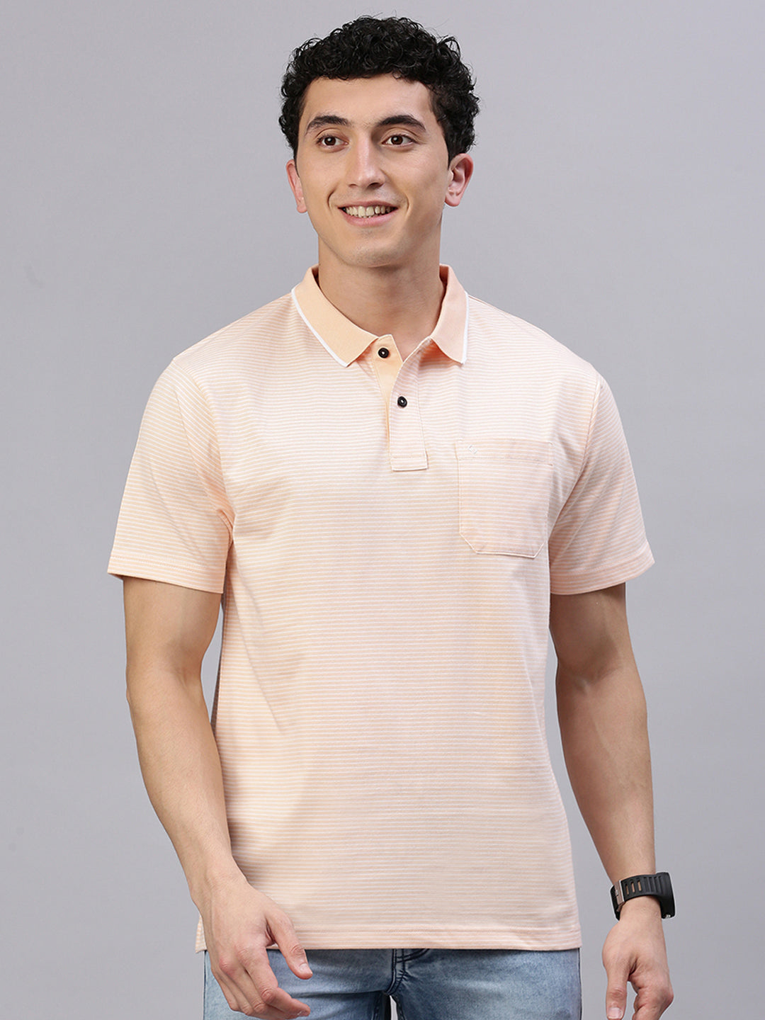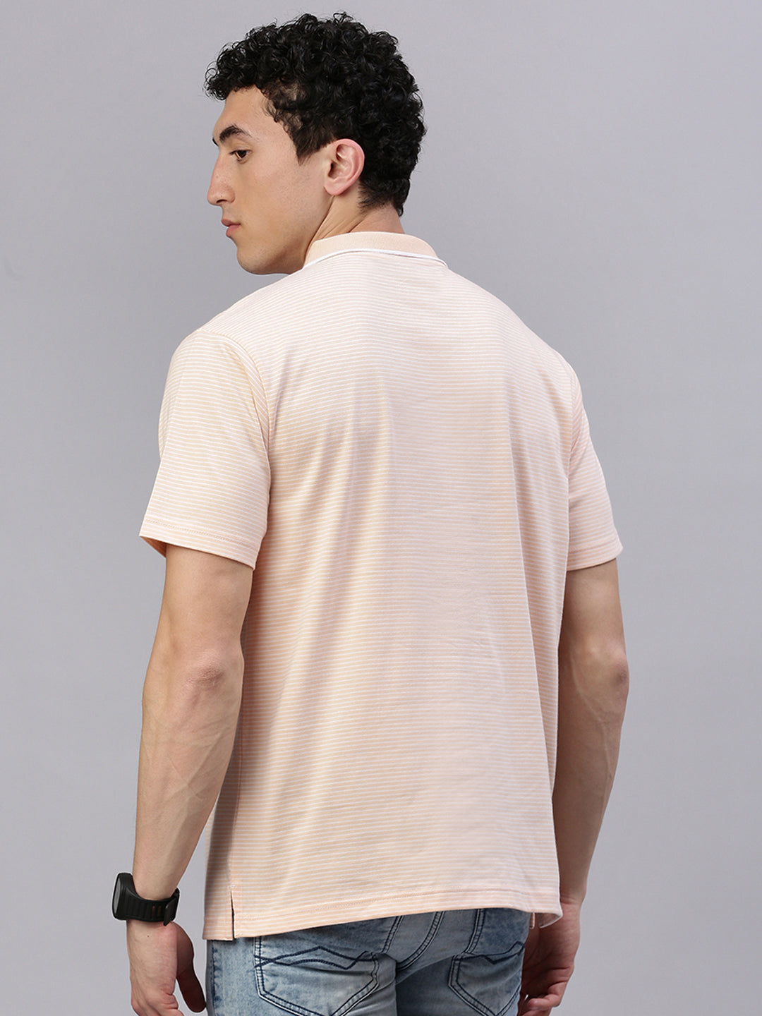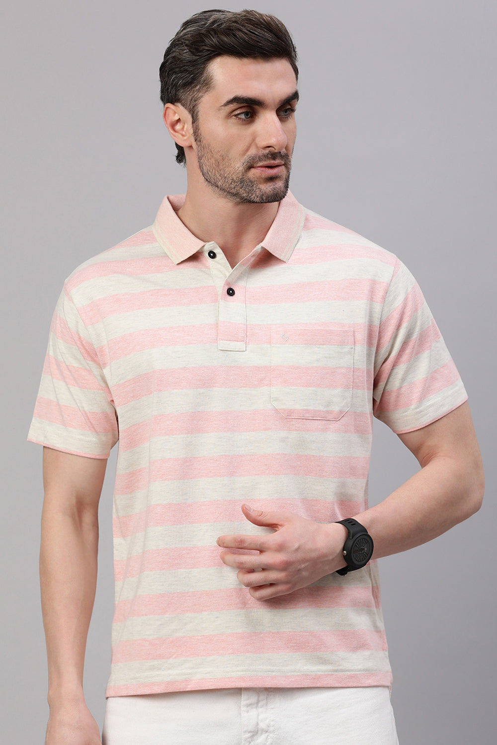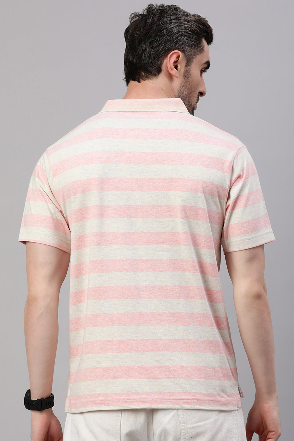 Classic Polo Men's Half Sleeve Off White/Pink Polo Neck Authentic Fit Striped T-Shirt