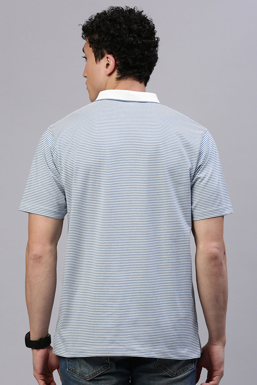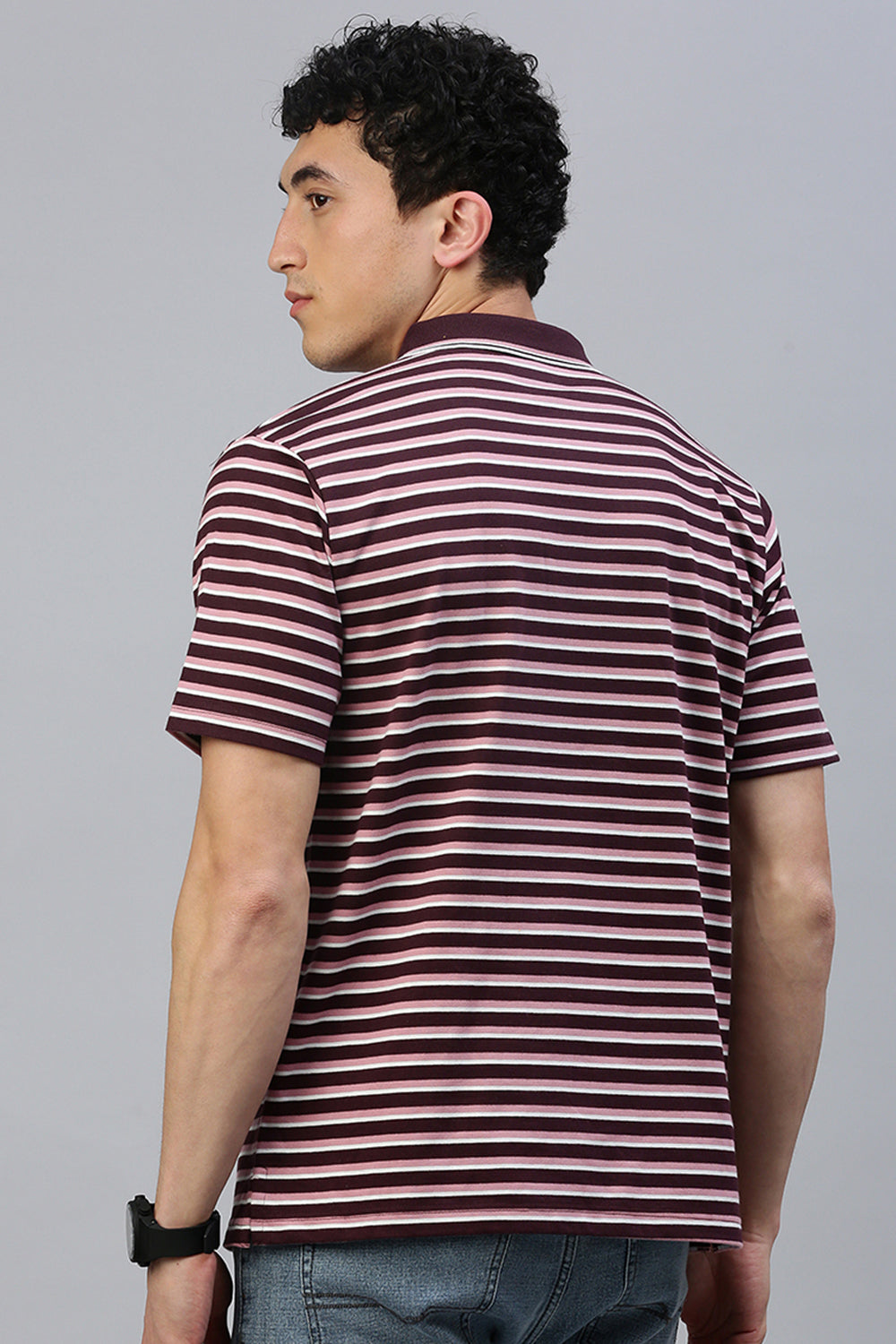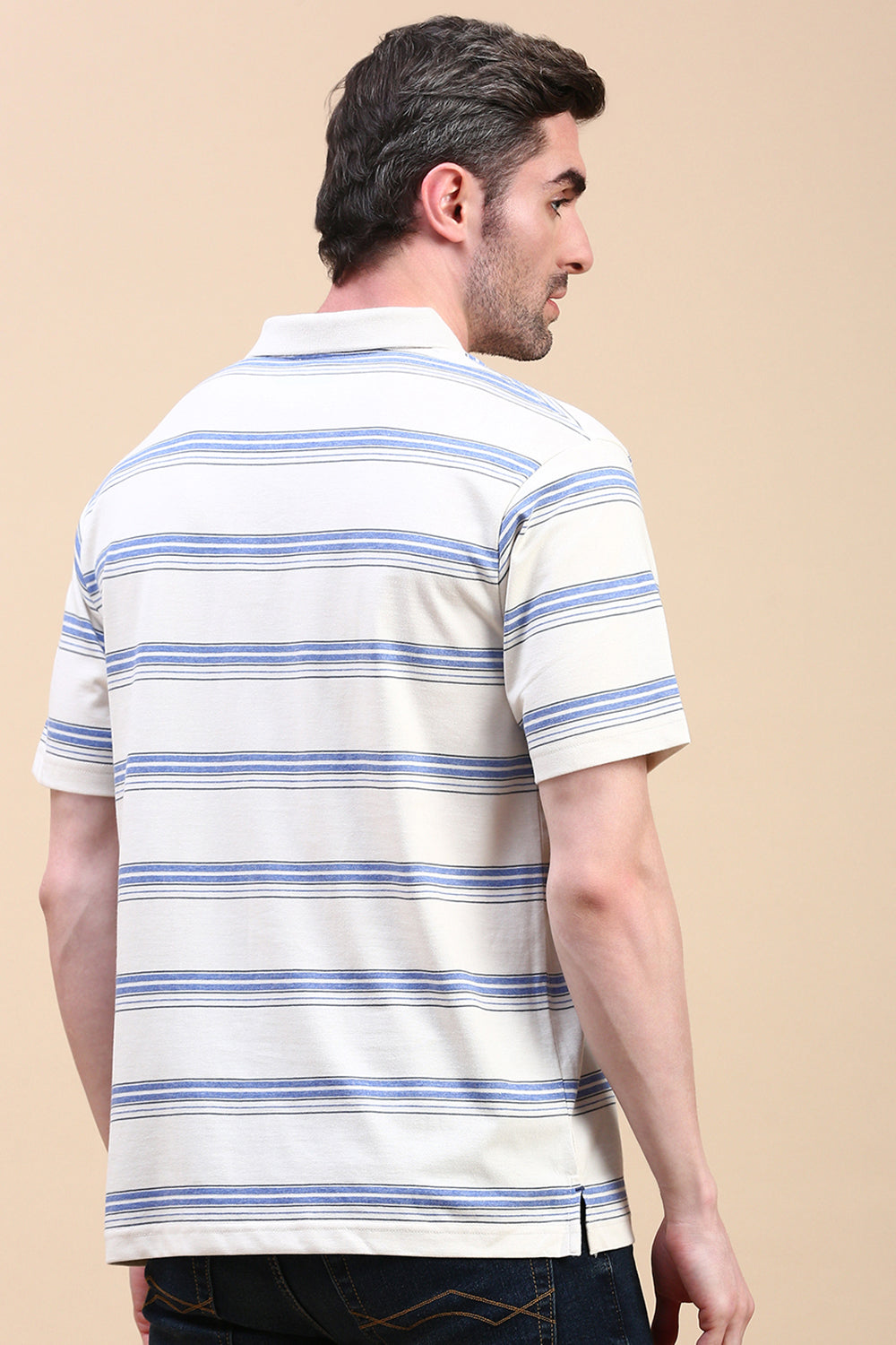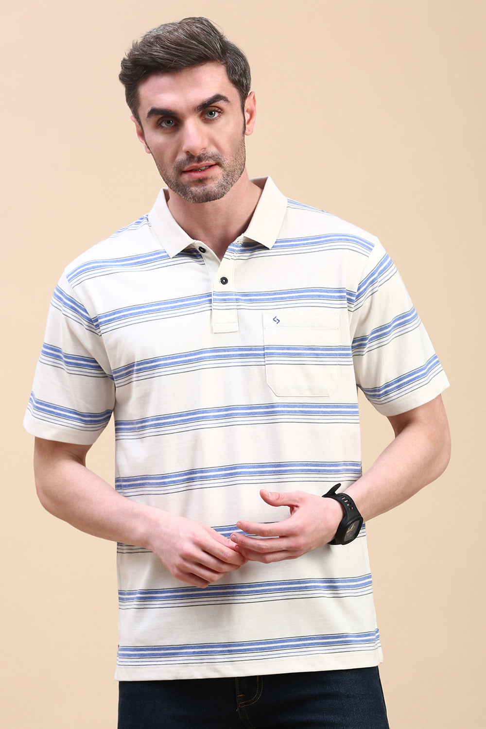 Classic Polo Men's Half Sleeve Off White/Pink Polo Neck Authentic Fit Striped T-Shirt