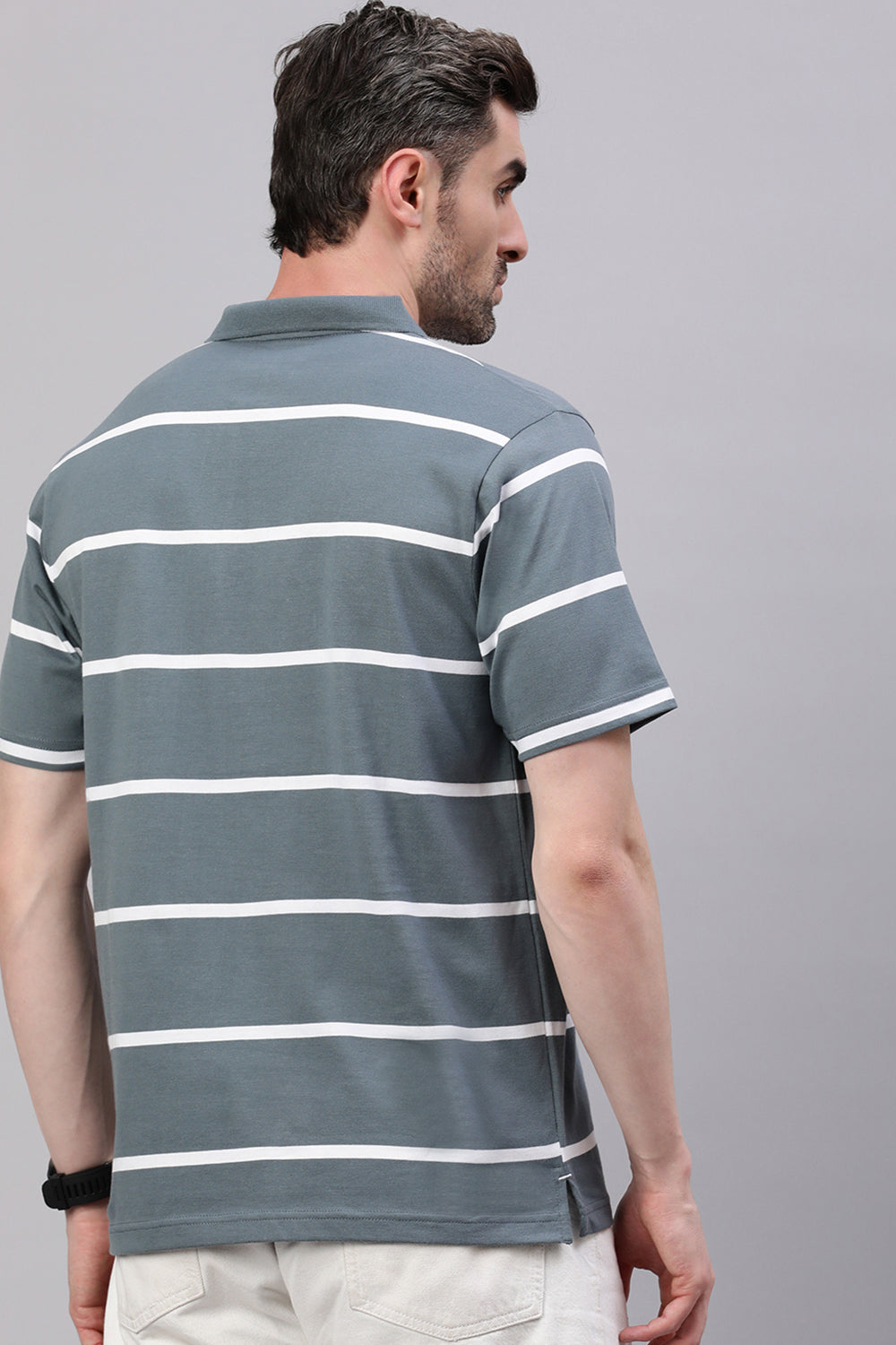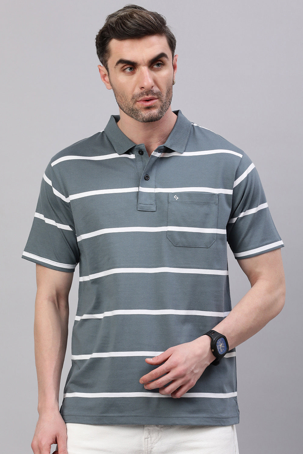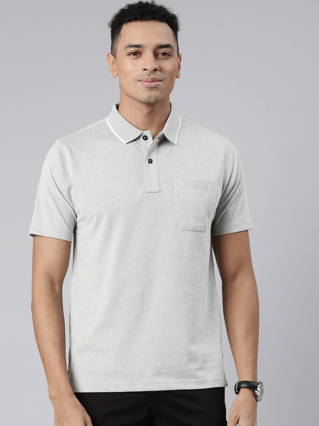 Classic Polo Men's Half Sleeve Grey Polo Neck Slim Fit All-Over Print T-Shirt