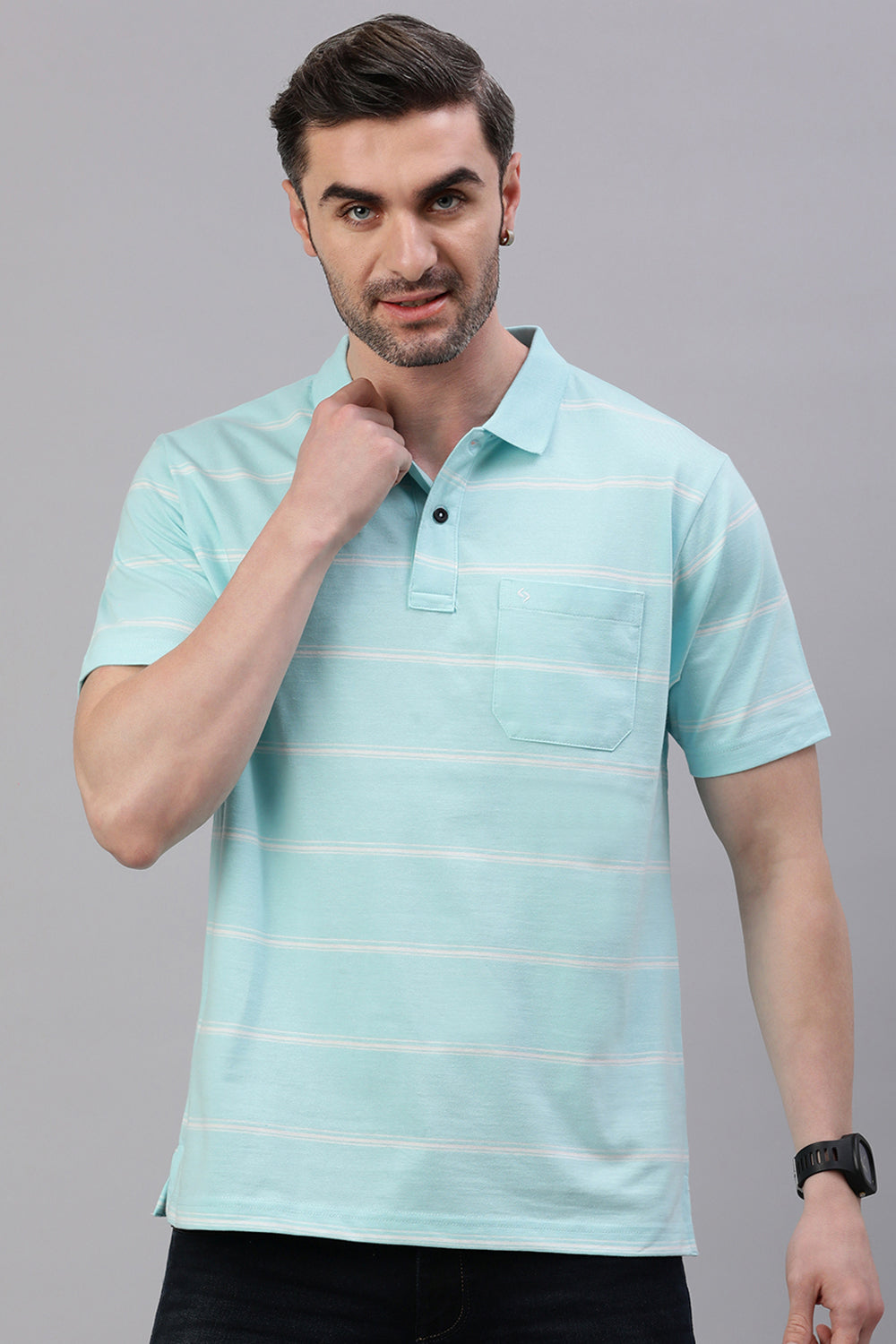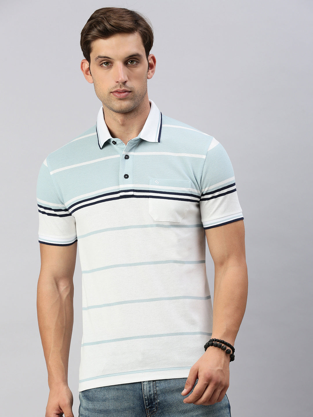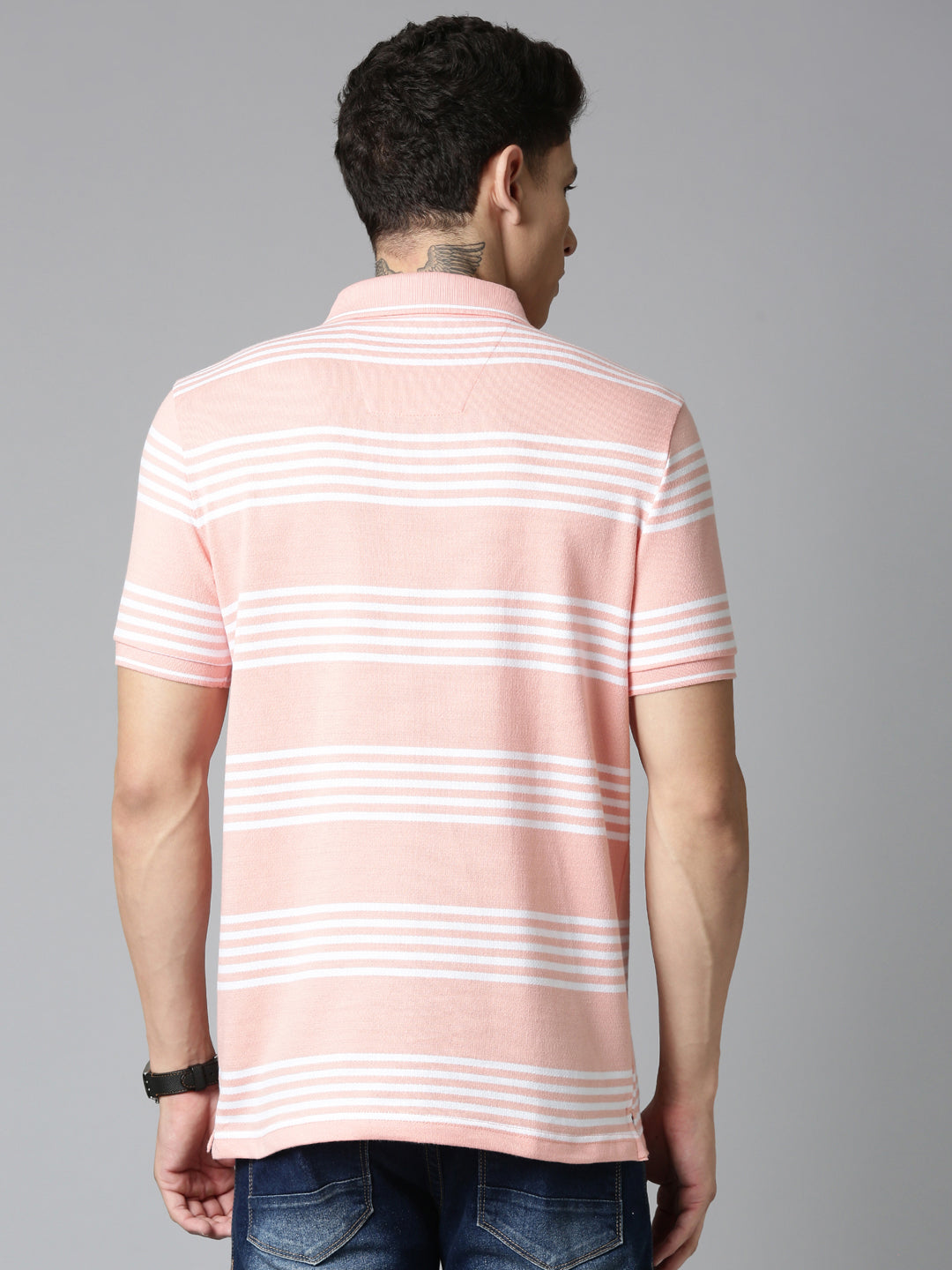 Classic Polo Mens Striped Peach Polo Neck Slim Fit T-Shirt | VTA - 274 B SF P
