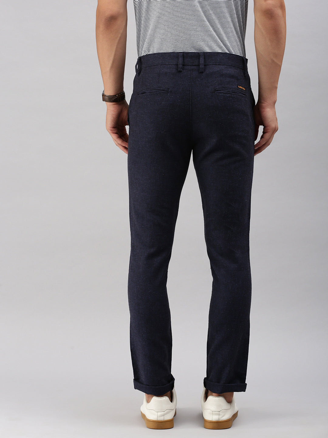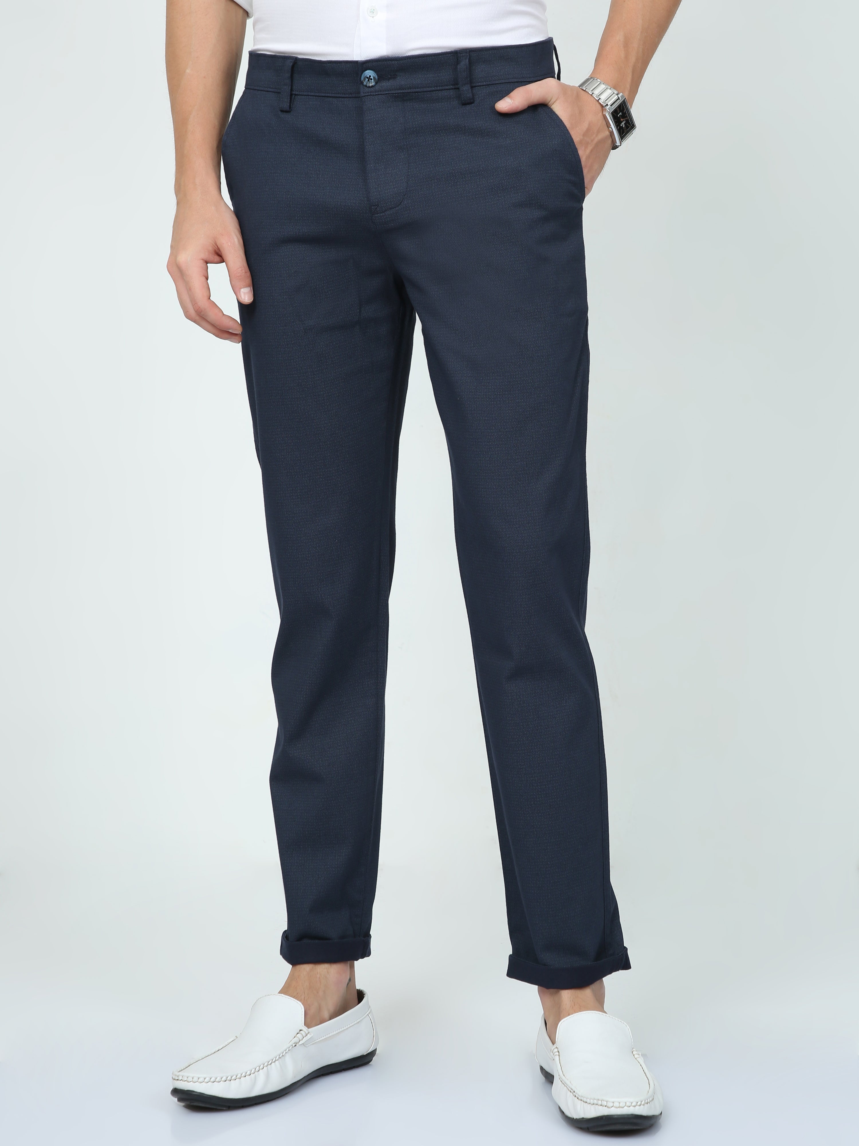 Classic Polo Men's Navy Blue Moderate Fit Solid Casual Trouser | TP2-EL-12 B-NVY-MF-LY