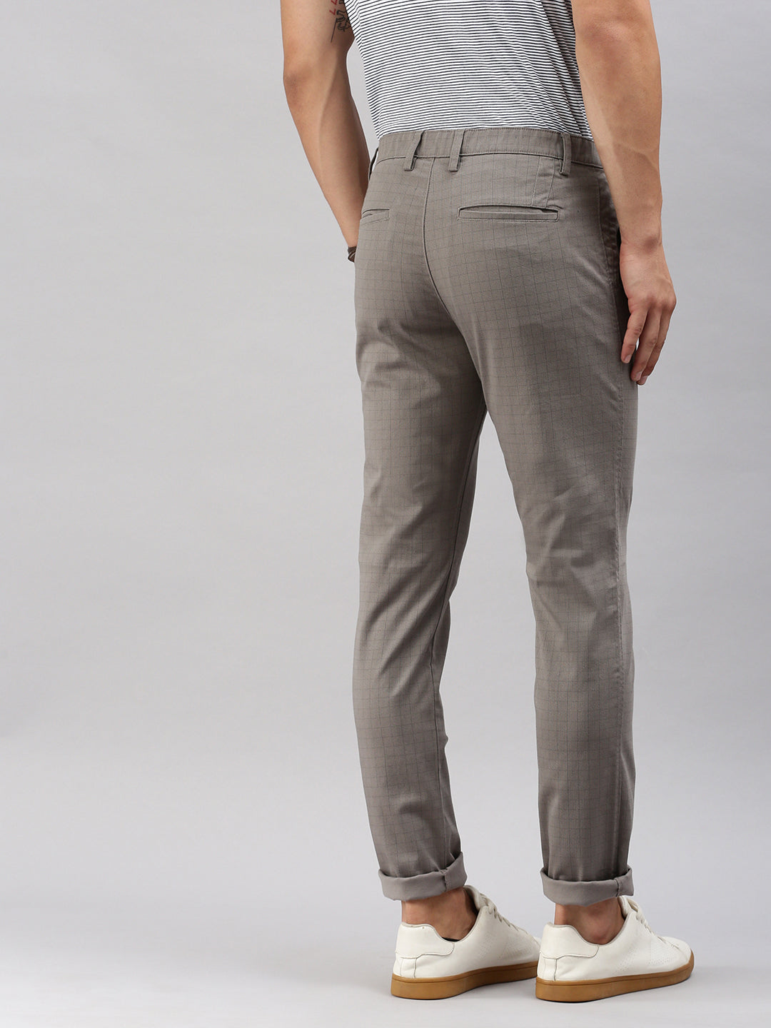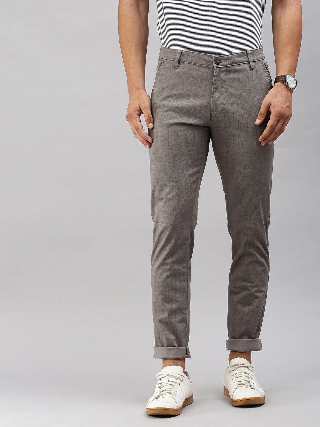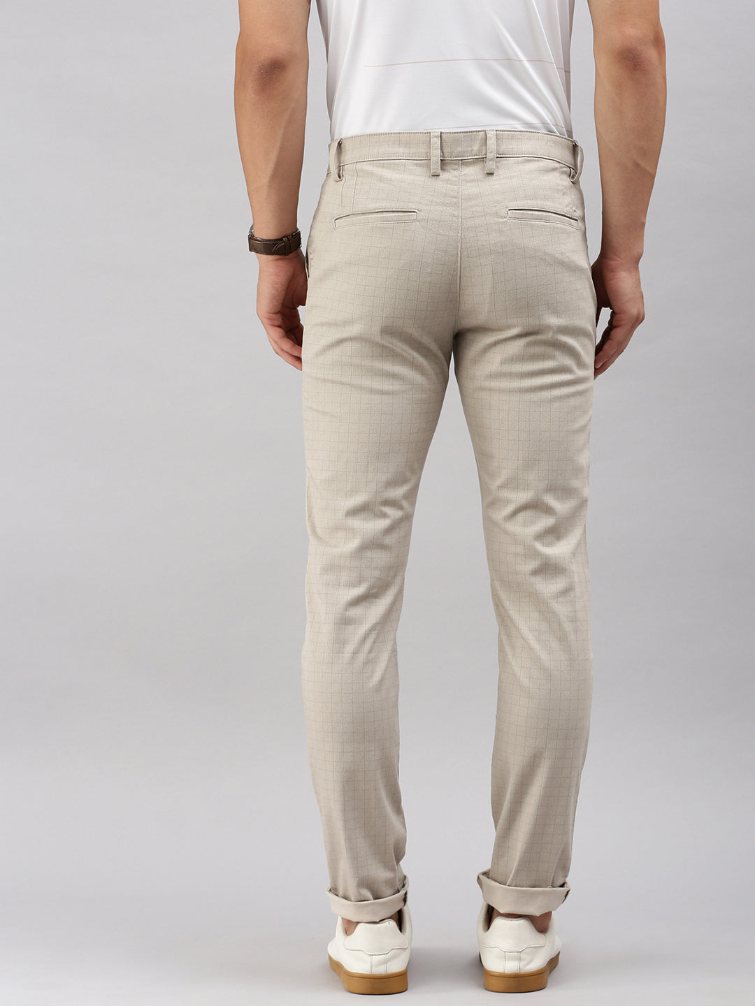 Classic Polo Men's Beige Moderate Fit Checked Casual Trouser | TP2-CL 05 A-BEG-MF-LY