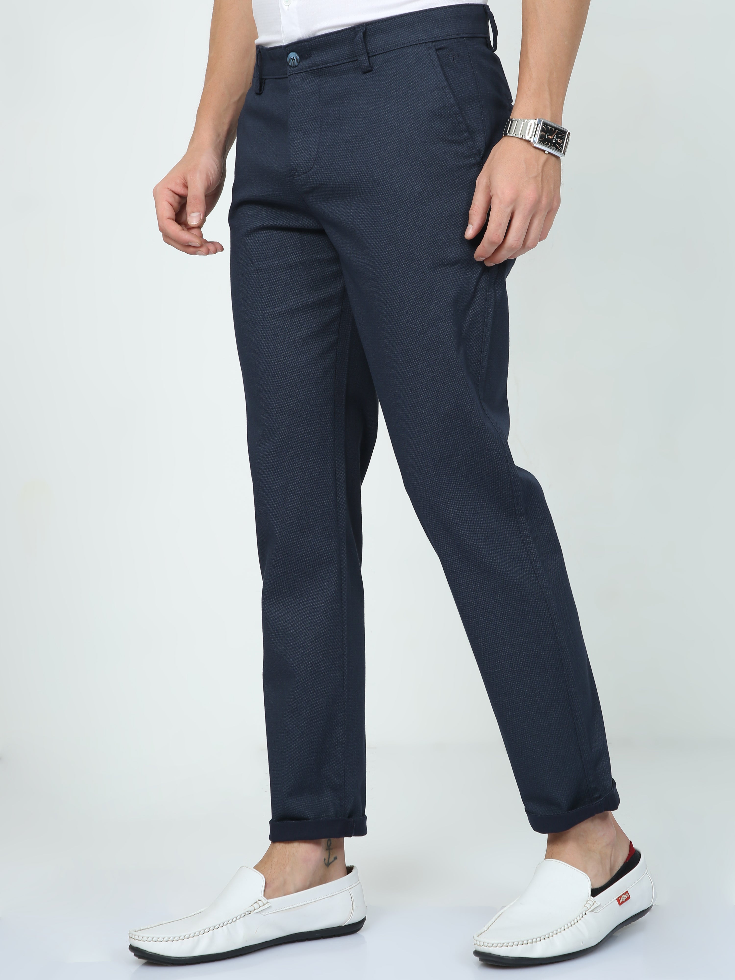 Classic Polo Mens Slim Fit Solid Navy Color Trousers | To2-08 B-Nvy-Sf-Ly