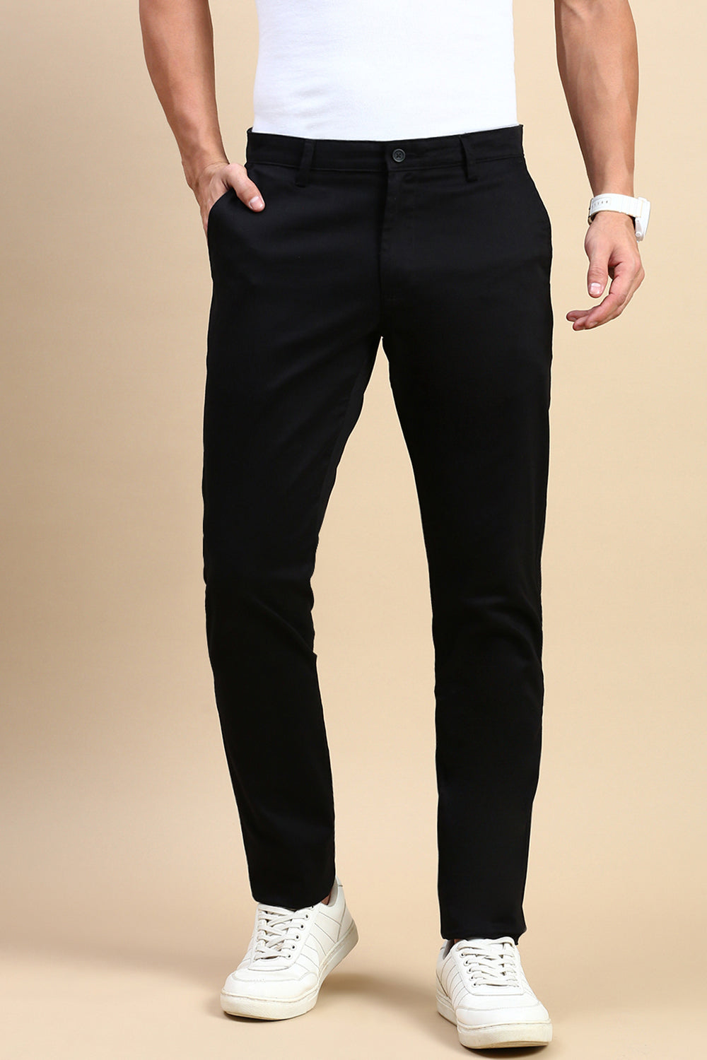 Classic Polo Men's Black Slim Fit Solid Trouser | TP2-EL-01 E-BLK-FR-LY