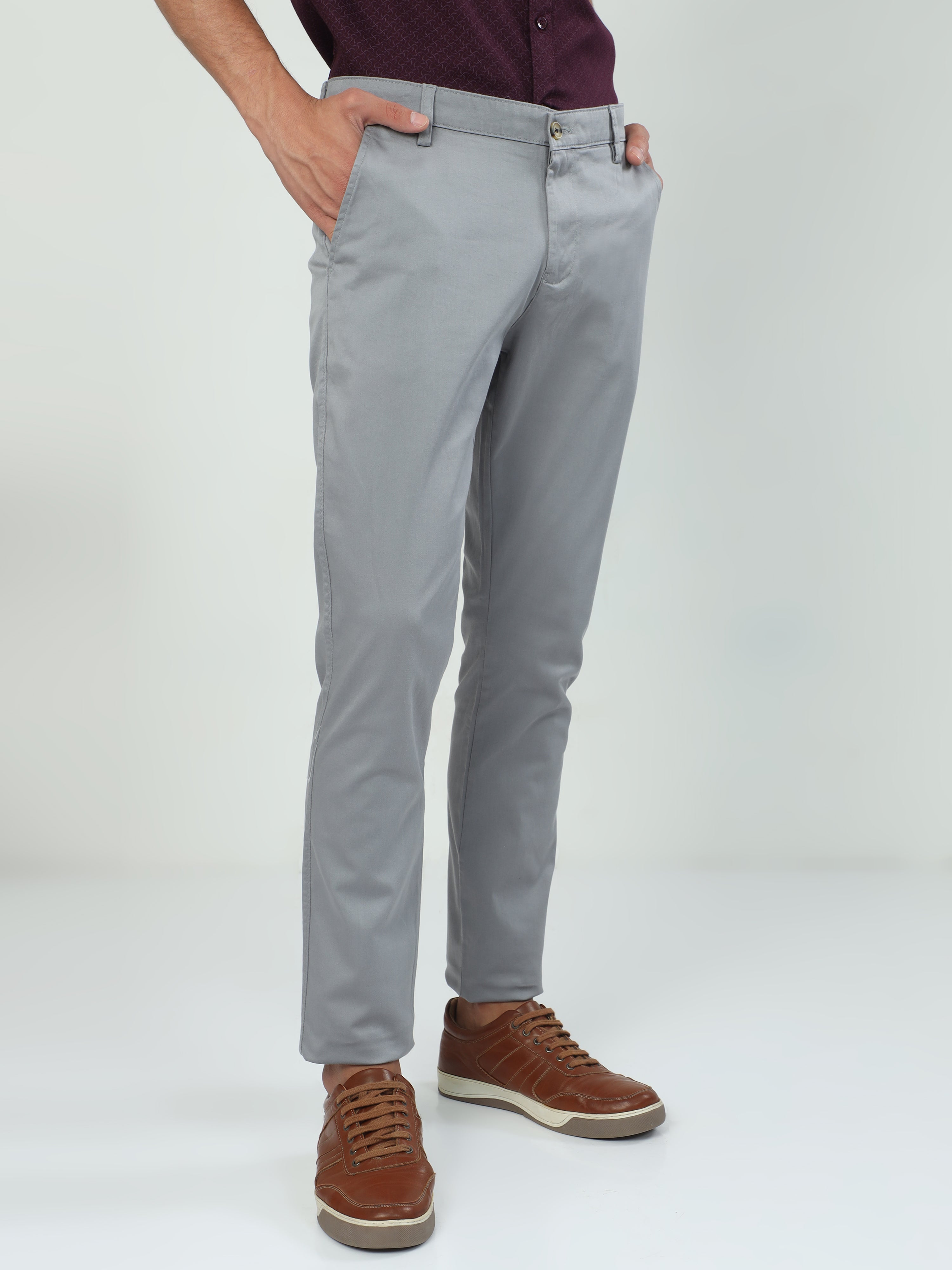 Classic Polo Men's Moderate Fit Cotton Trousers | CR-TRS-SATIN-LT.GREY MF LY