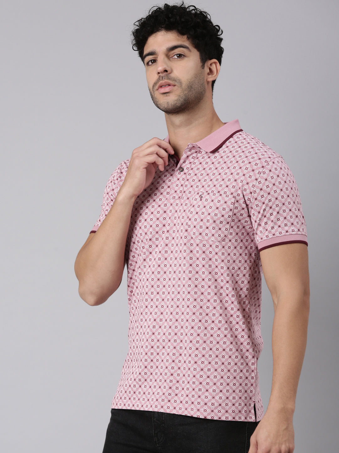 Classic Polo Men's Half Sleeve Pink/White Polo Neck Slim Fit All-Over Print Cotton T-Shirt | BELLO - 395 A SF P