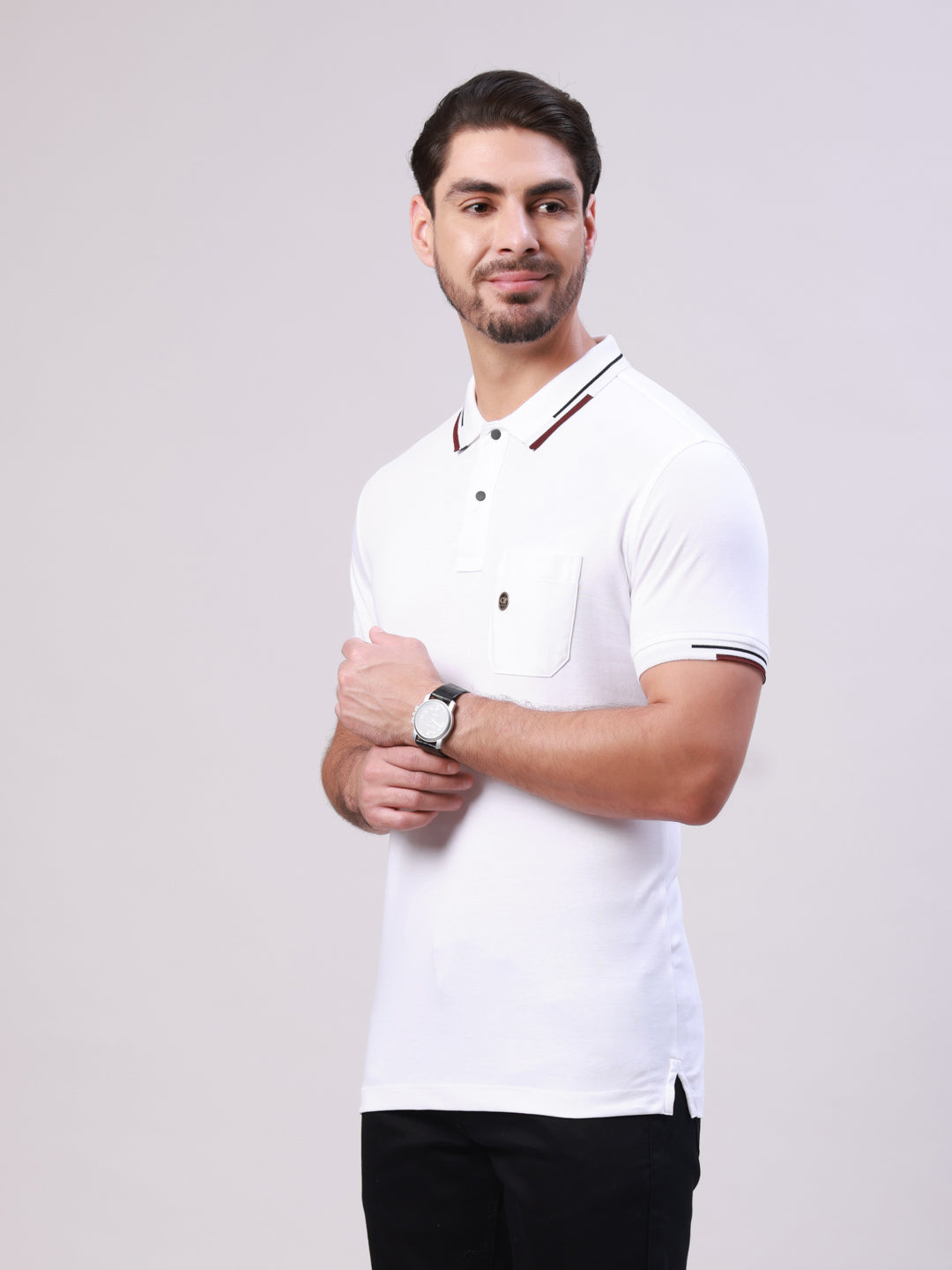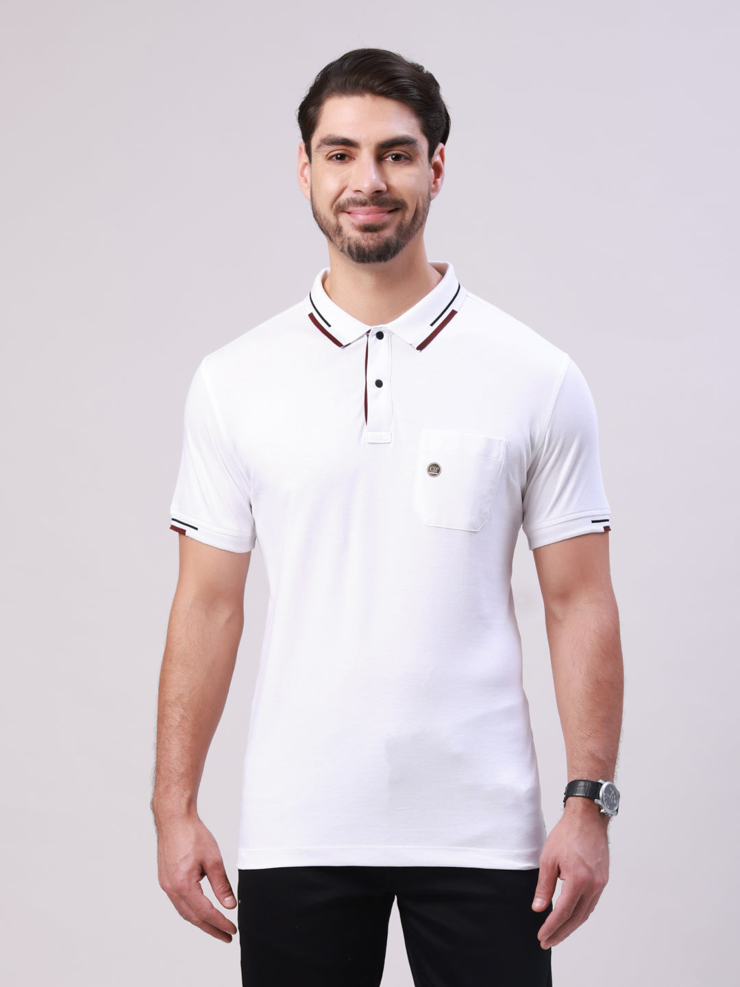 Classic Polo Men's White Polo Neck Solid Cotton Slim Fit T-Shirt | ELITE-POLO-47 A SF P