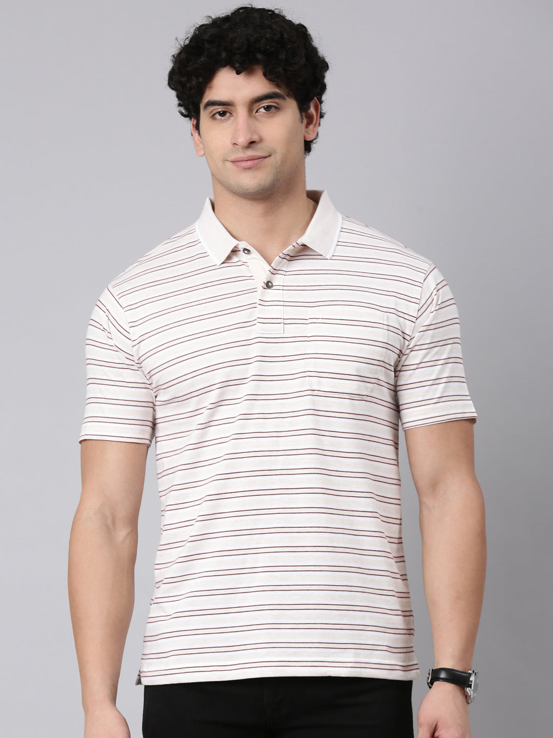 Elevate your casual wardrobe with Classic Polo striped half sleeve cotton polo T-Shirt, a perfect blend of timeless design and breathable comfort. Pair it with jeans, chinos, or shorts, this striped polo t-shirt will elevate your style and comfort.