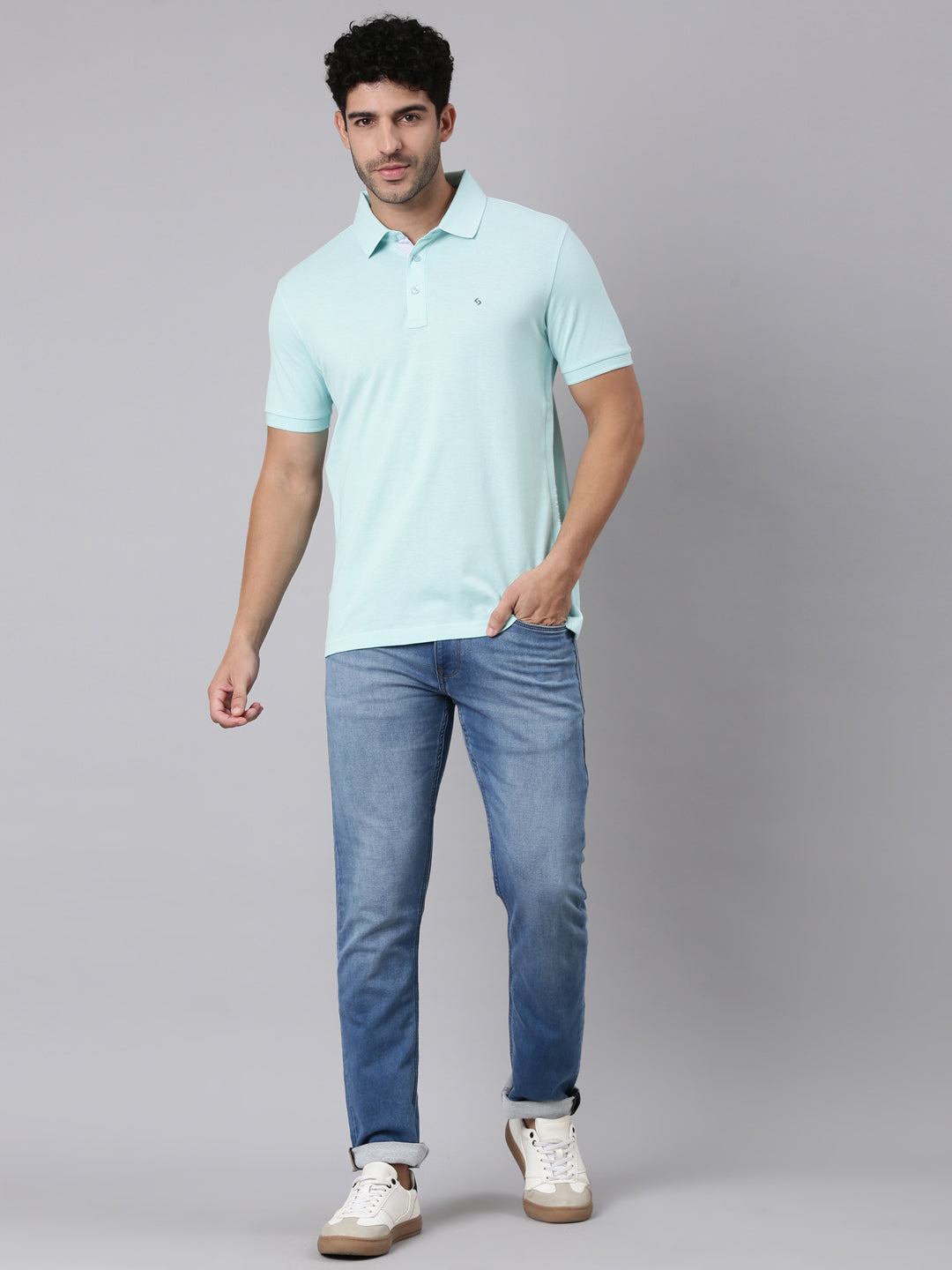 Classic Polo Men's Half Sleeve Light Blue Polo Neck Slim Fit Solid Cotton T-Shirt | PRM - 812 A SF P
