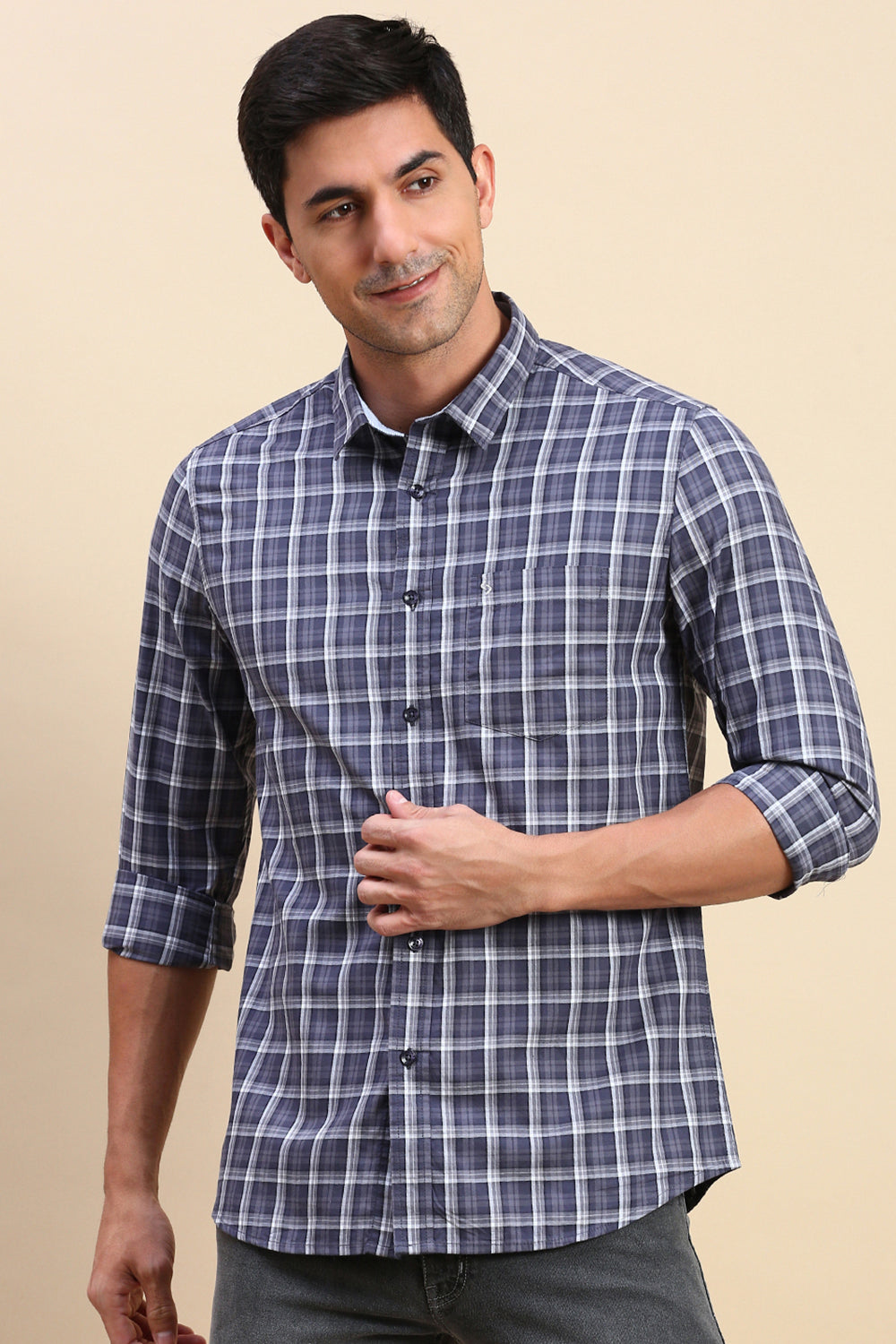 Classic Polo Men's Full Sleeve Blue/White Polo Neck Slim Fit Checked Shirt | SP2-CL-77 B-FS-CHK-SF