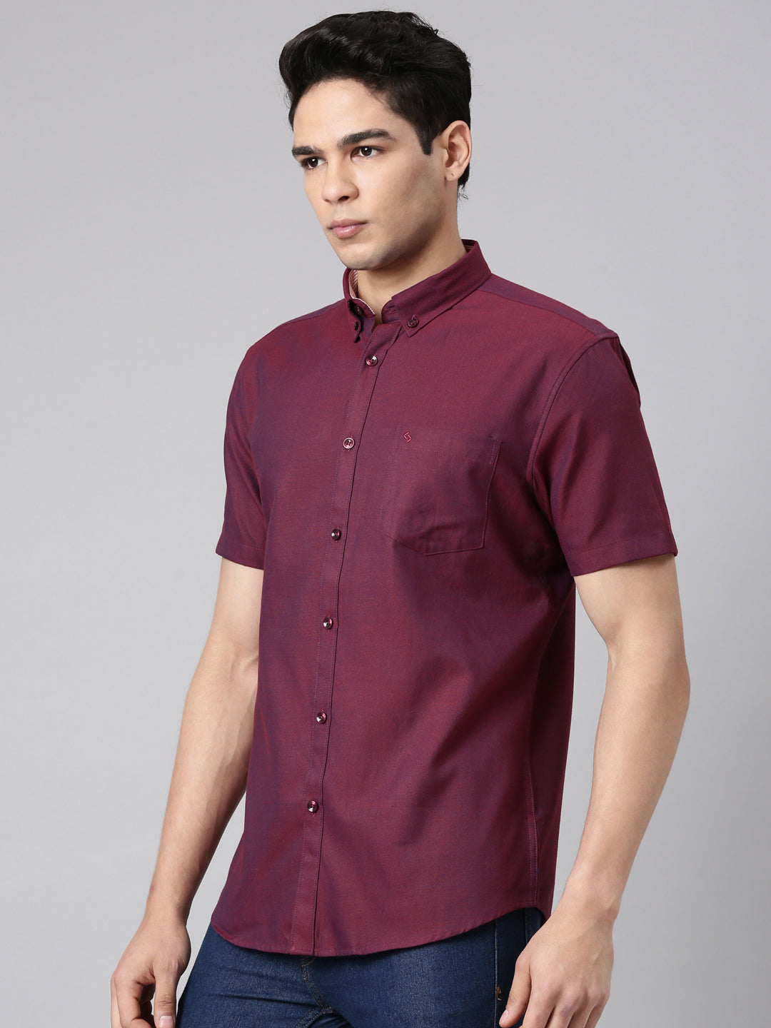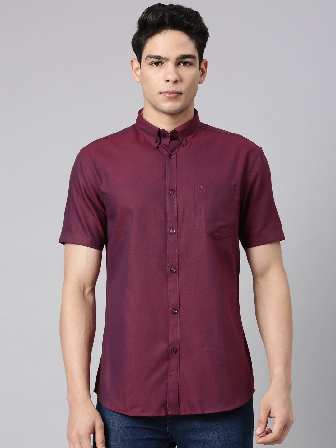 Classic Polo Men's Half Sleeve Maroon Polo Neck Milano Fit Solid Cotton Casual Shirt | TOY-ENZO-MAROON MF HS