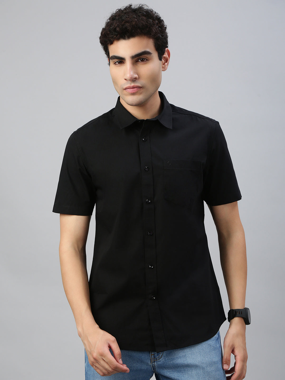 This Classic Polo Men's half sleeve Cotton Solid Shirt is a versatile addition to any wardrobe. Crafted from high-quality, breathable cotton fabric, it offers both comfort and durability. The classic solid color design makes it easy to pair with chinos, or trousers, casual, or semi-formal look.